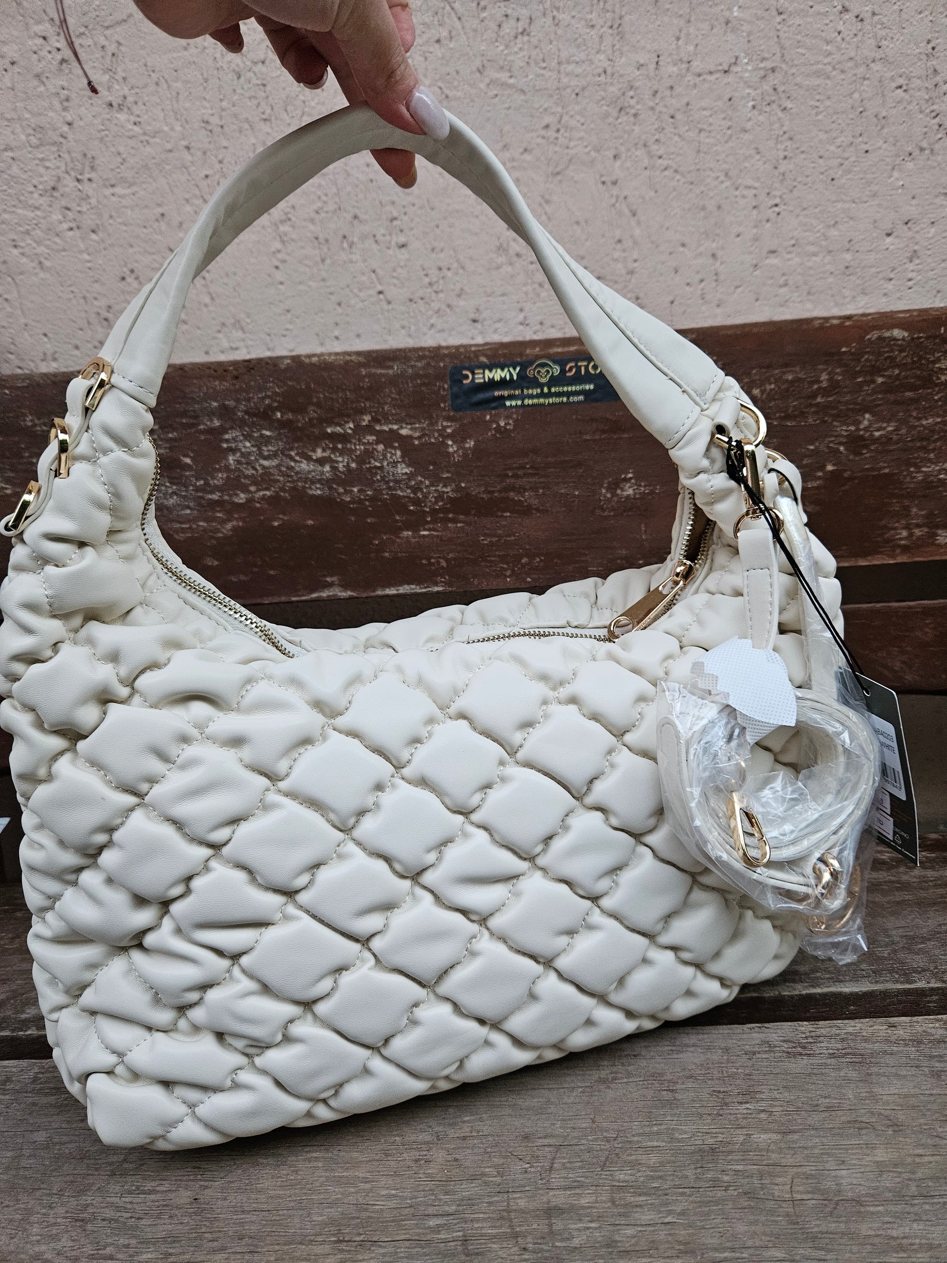 Borsa a spalla, Lumberjack linea FLUFFY, in ecopelle imbottita. Ciondolo rimovibile. Chiusura con zip.