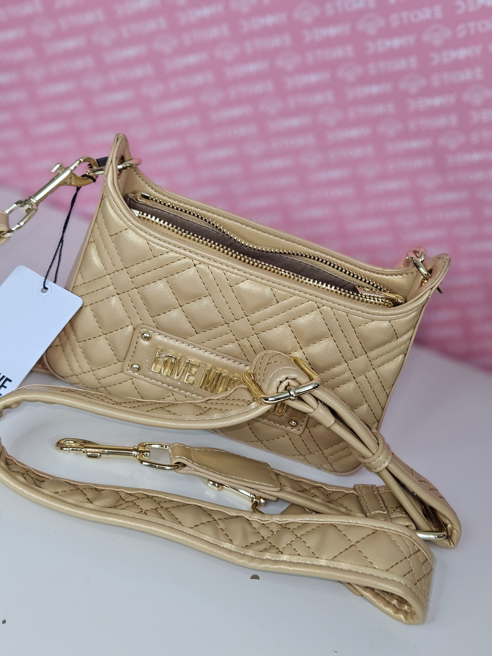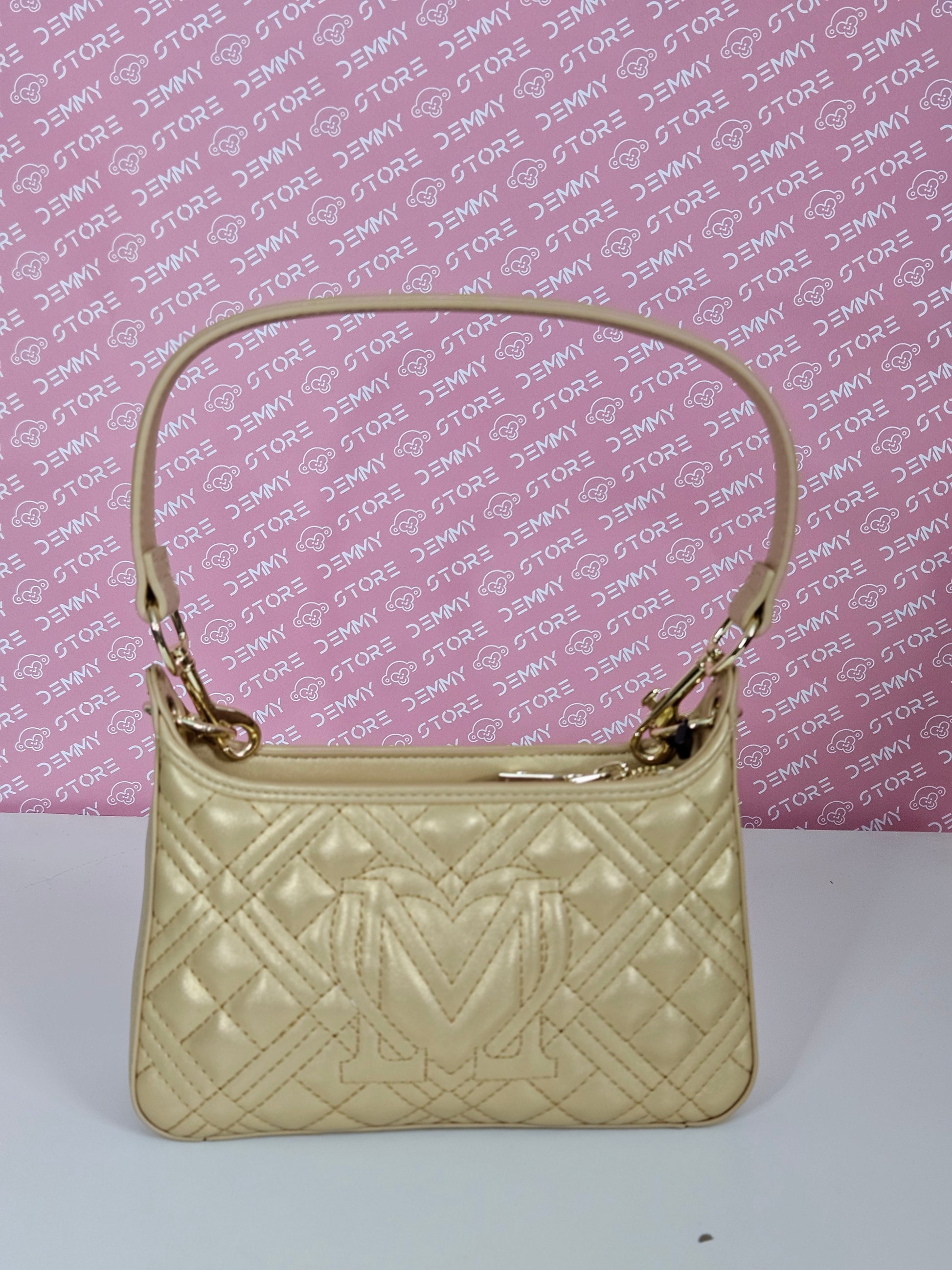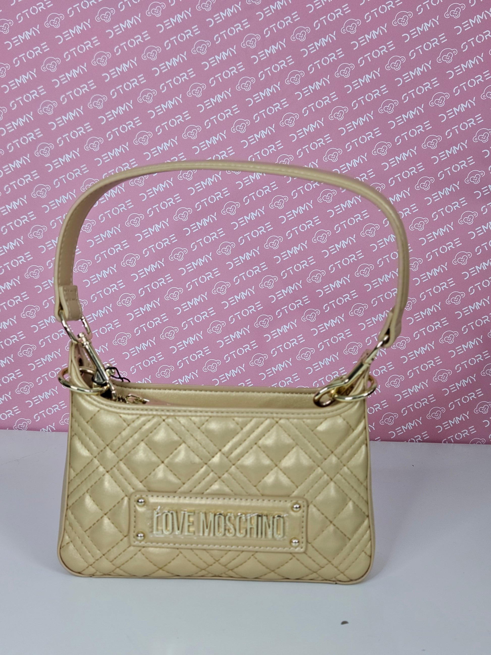 Borsetta a spalla Love Moschino, colore oro. Singolo manico a spalla rimovibile. Tracolla interna. Chiusura zip, interno foderato.