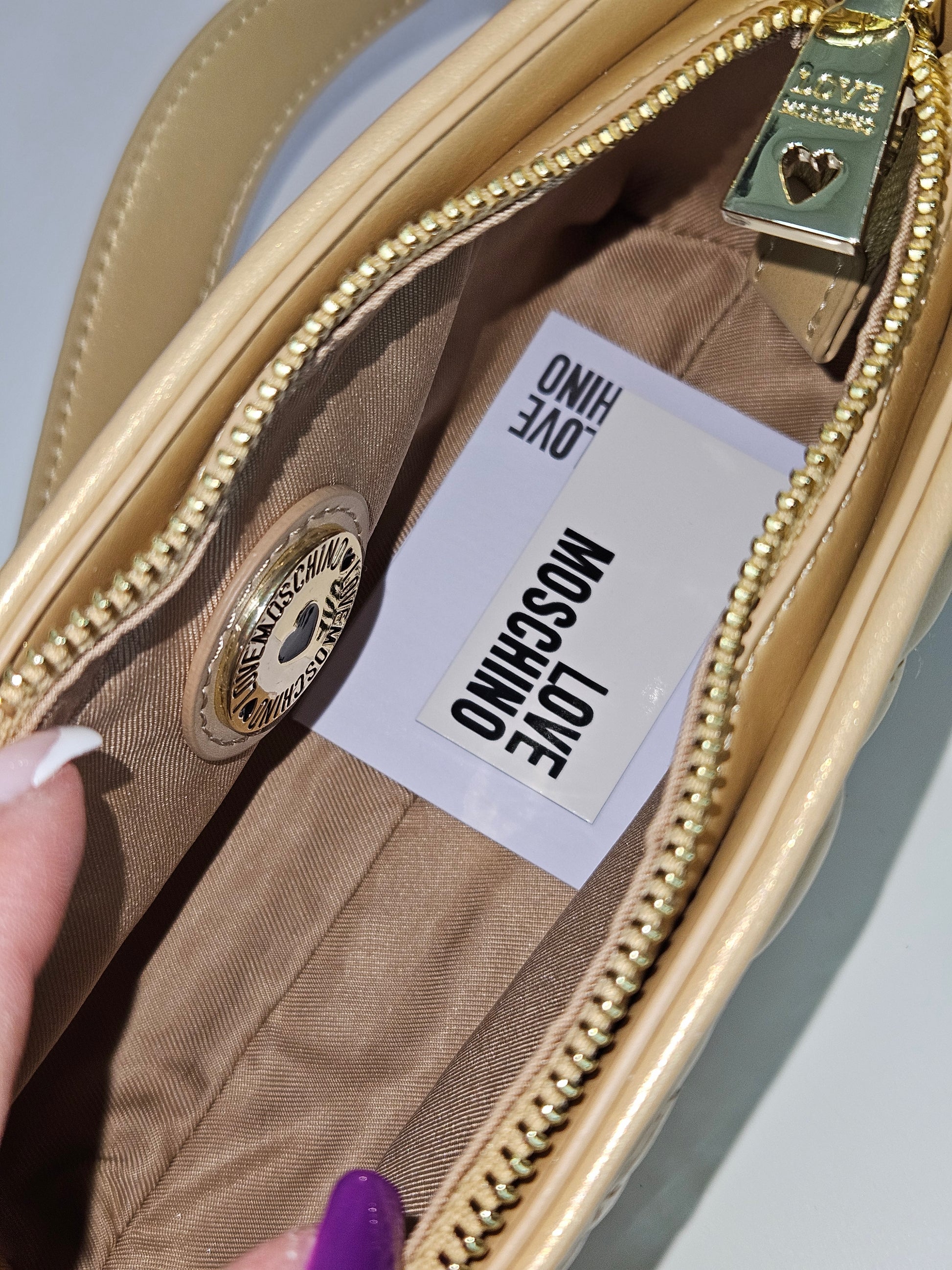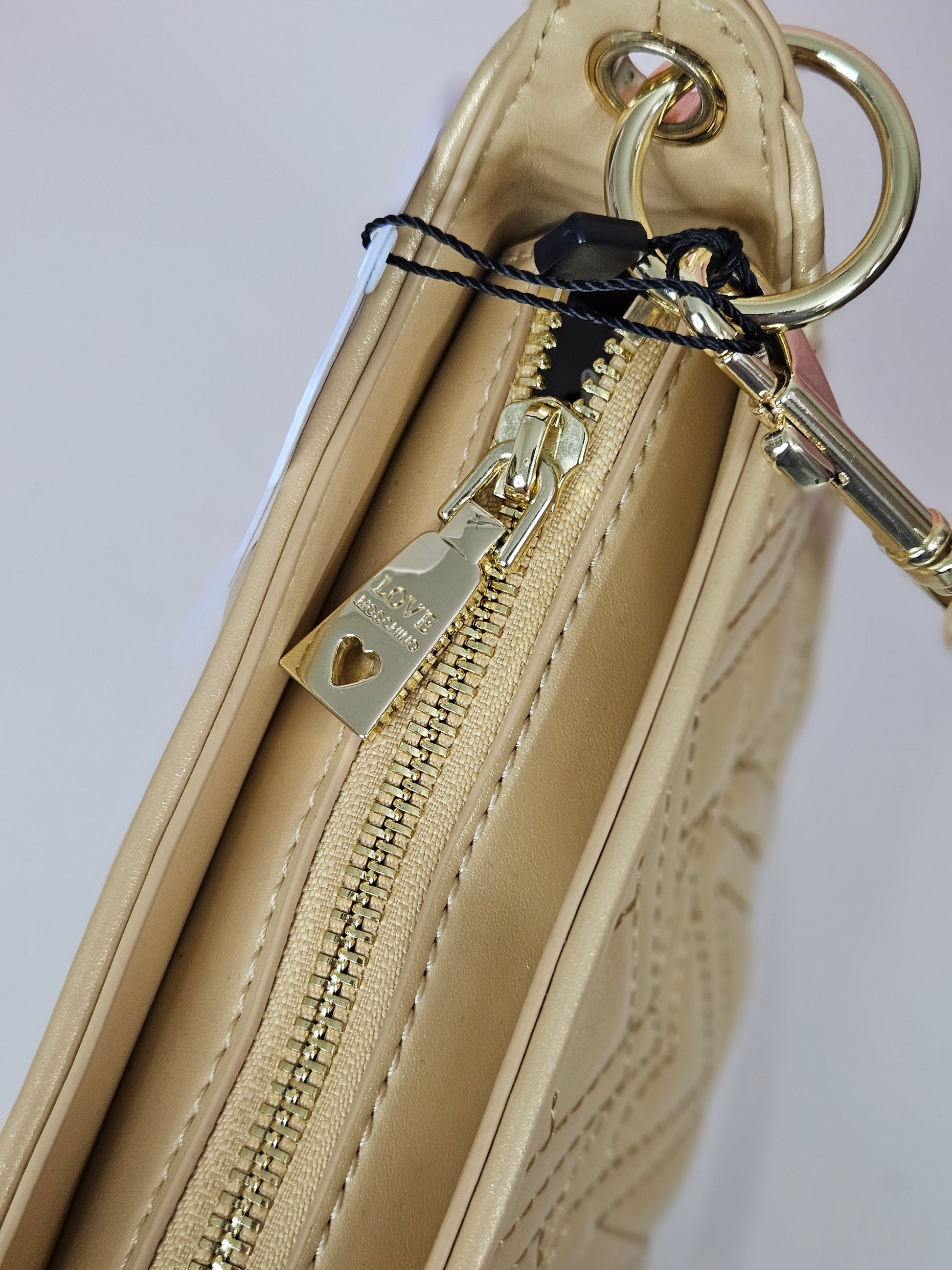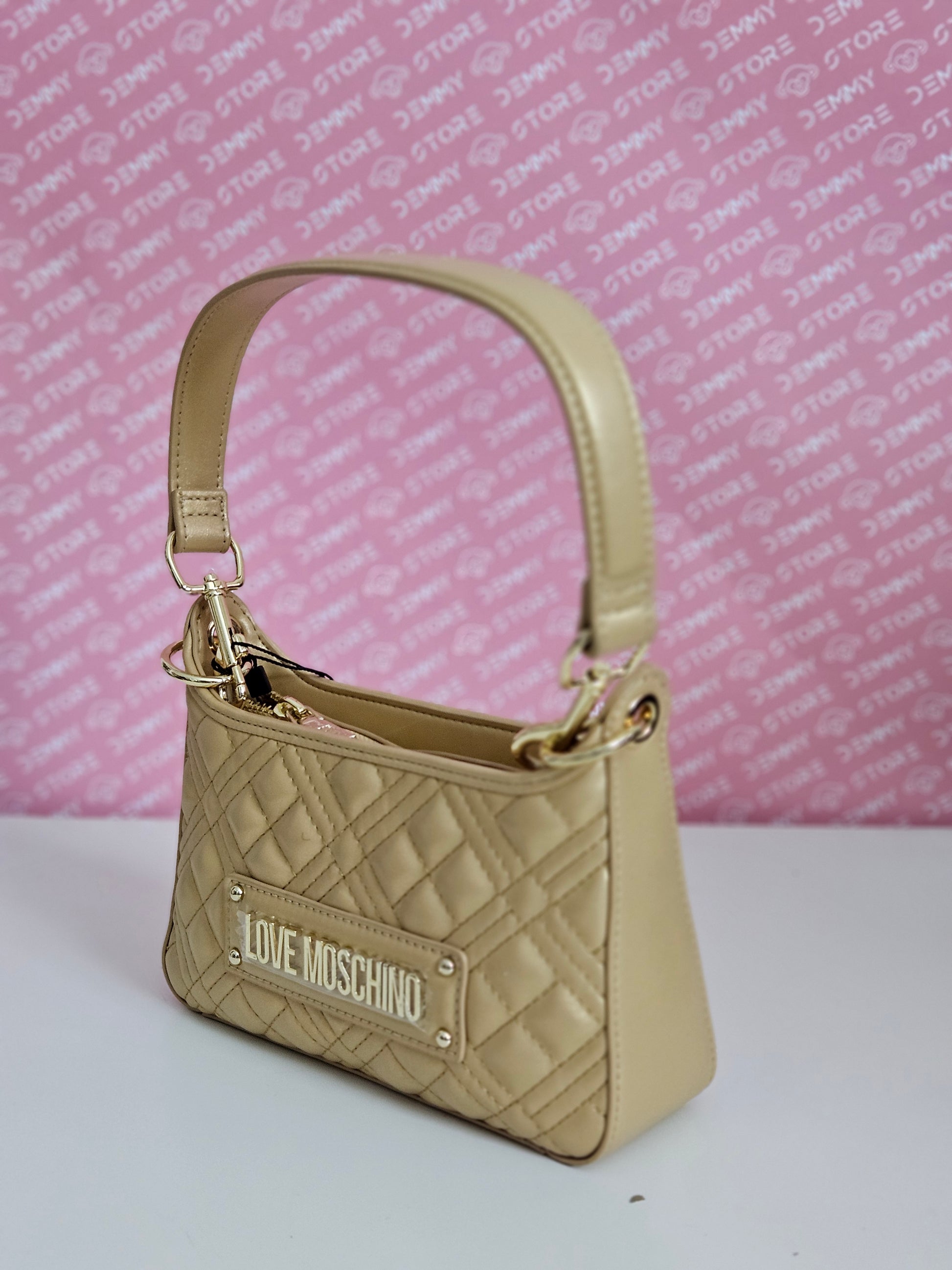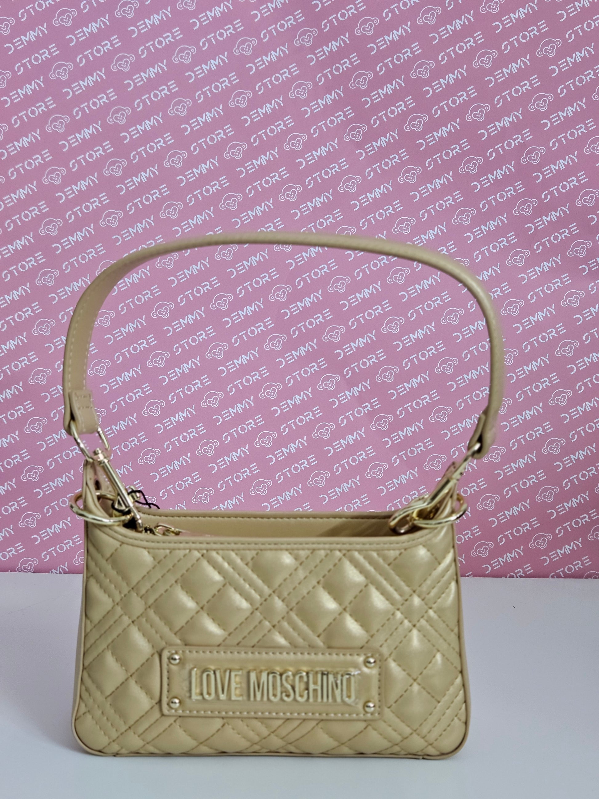 Borsetta a spalla Love Moschino, colore oro. Singolo manico a spalla rimovibile. Tracolla interna. Chiusura zip, interno foderato.