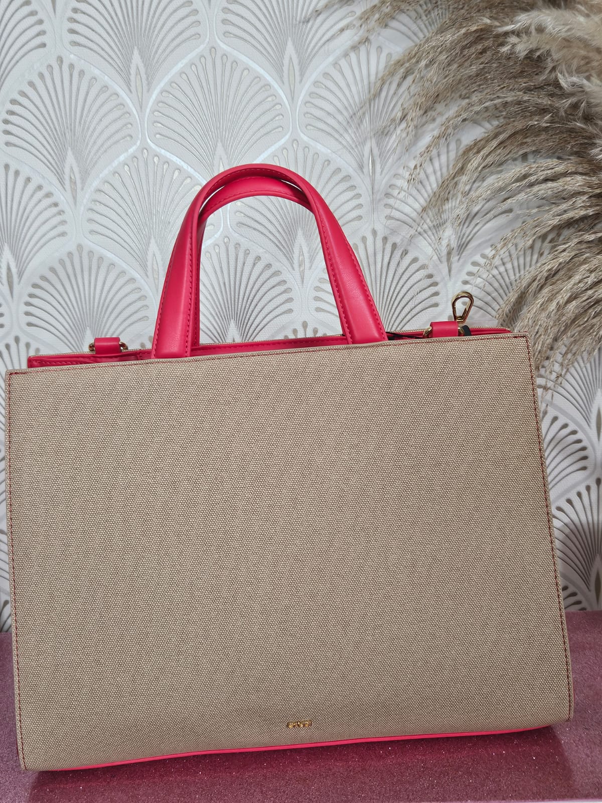 Scegli la borsa top handle in similpelle e tela con lettering GJ, logo ricamato e tracolla rimovibile. Per un'eleganza versatile e iconica. Tracolla removibile e regolabile, lunghezza 120 cm.