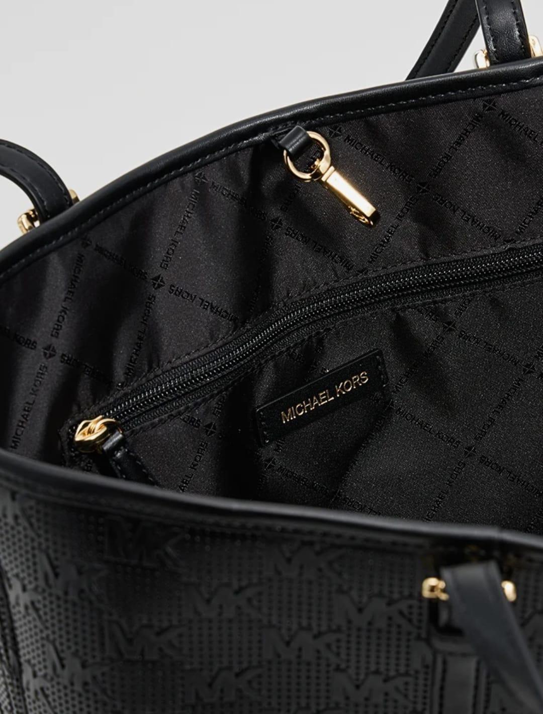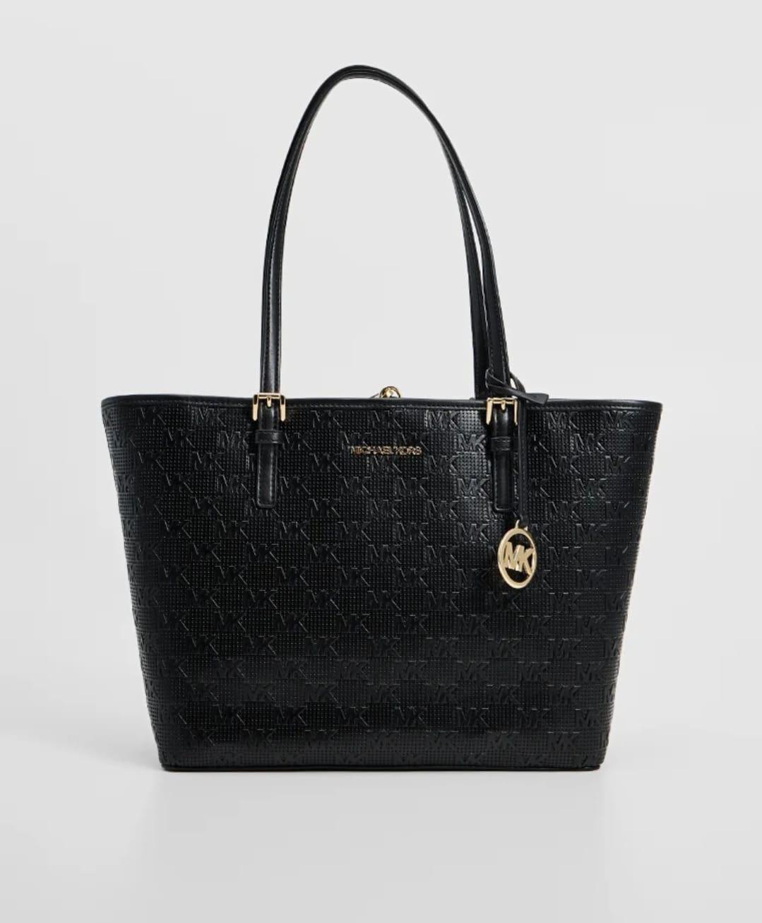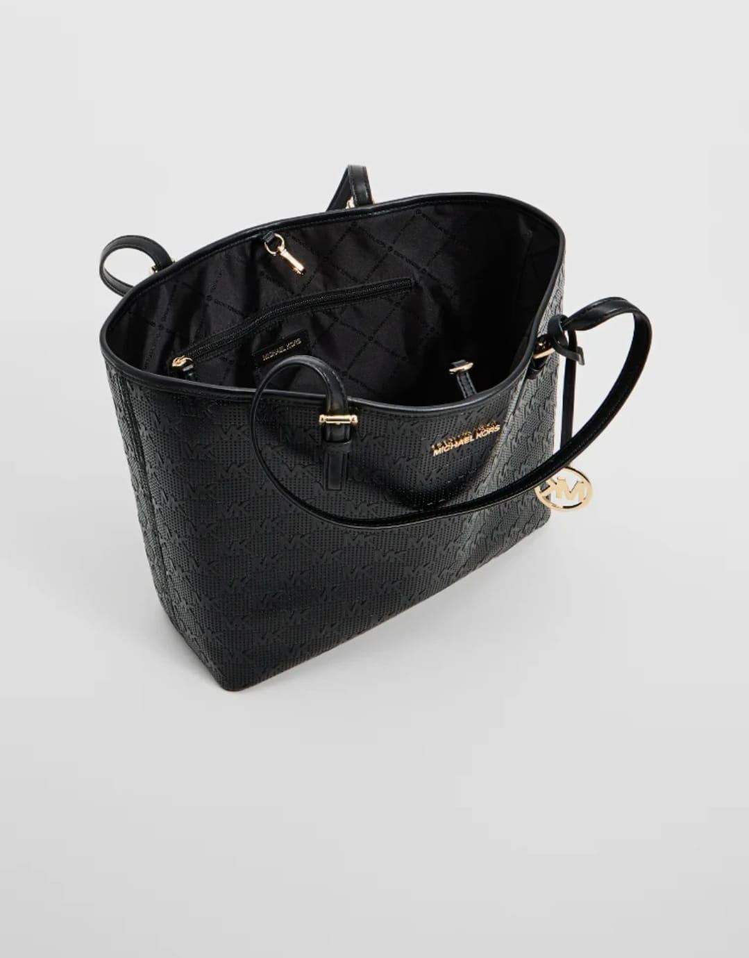 Borsa a spalla Jet set carryal, Michael Kors, colore nero con stamoa logo in rilievo.