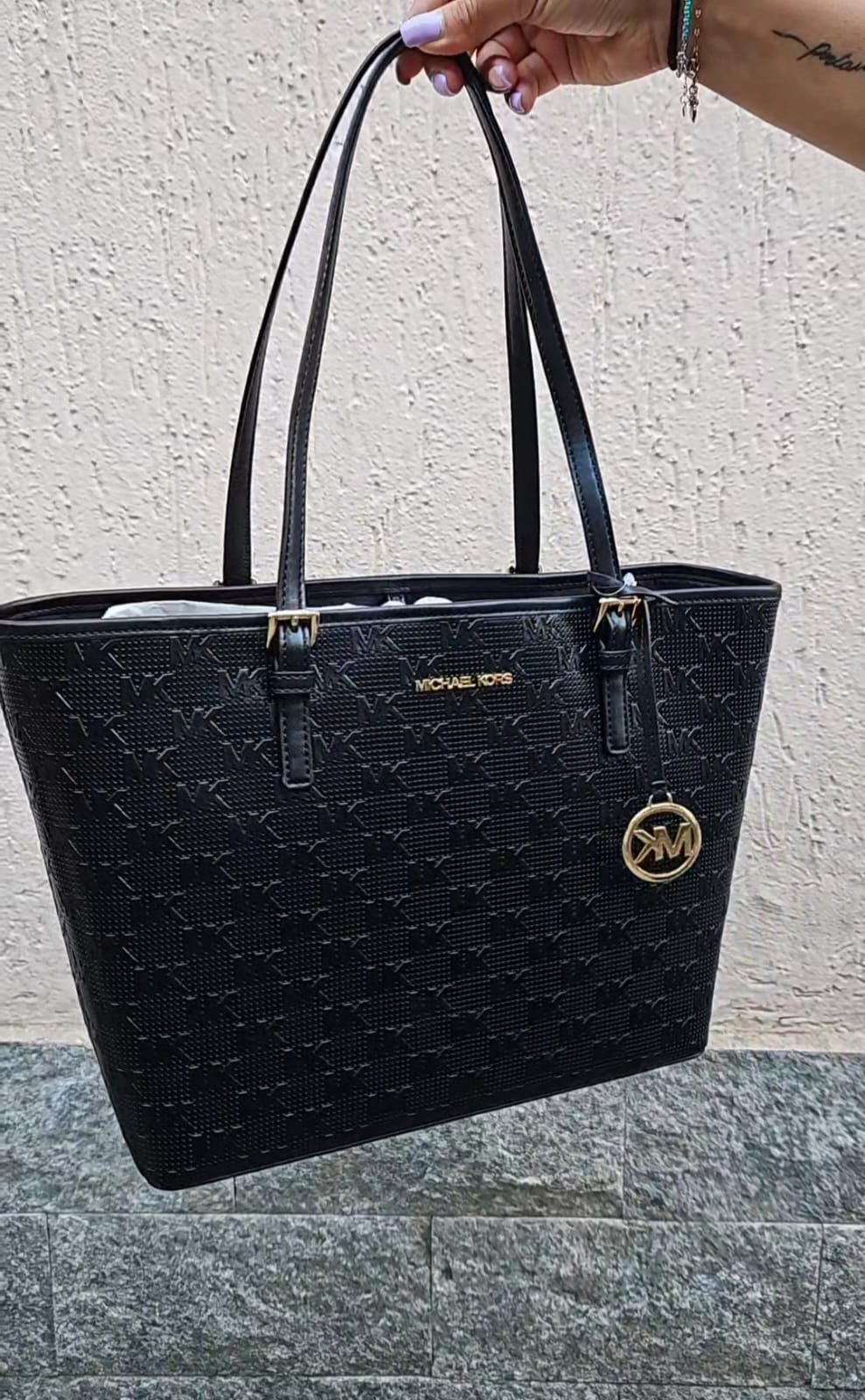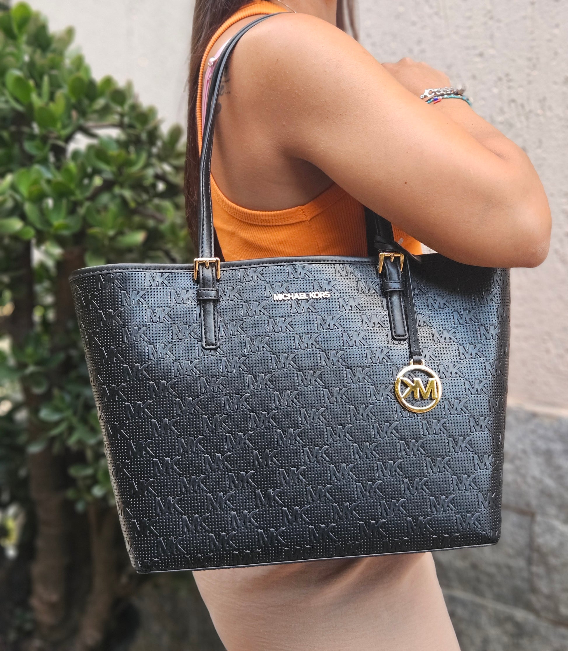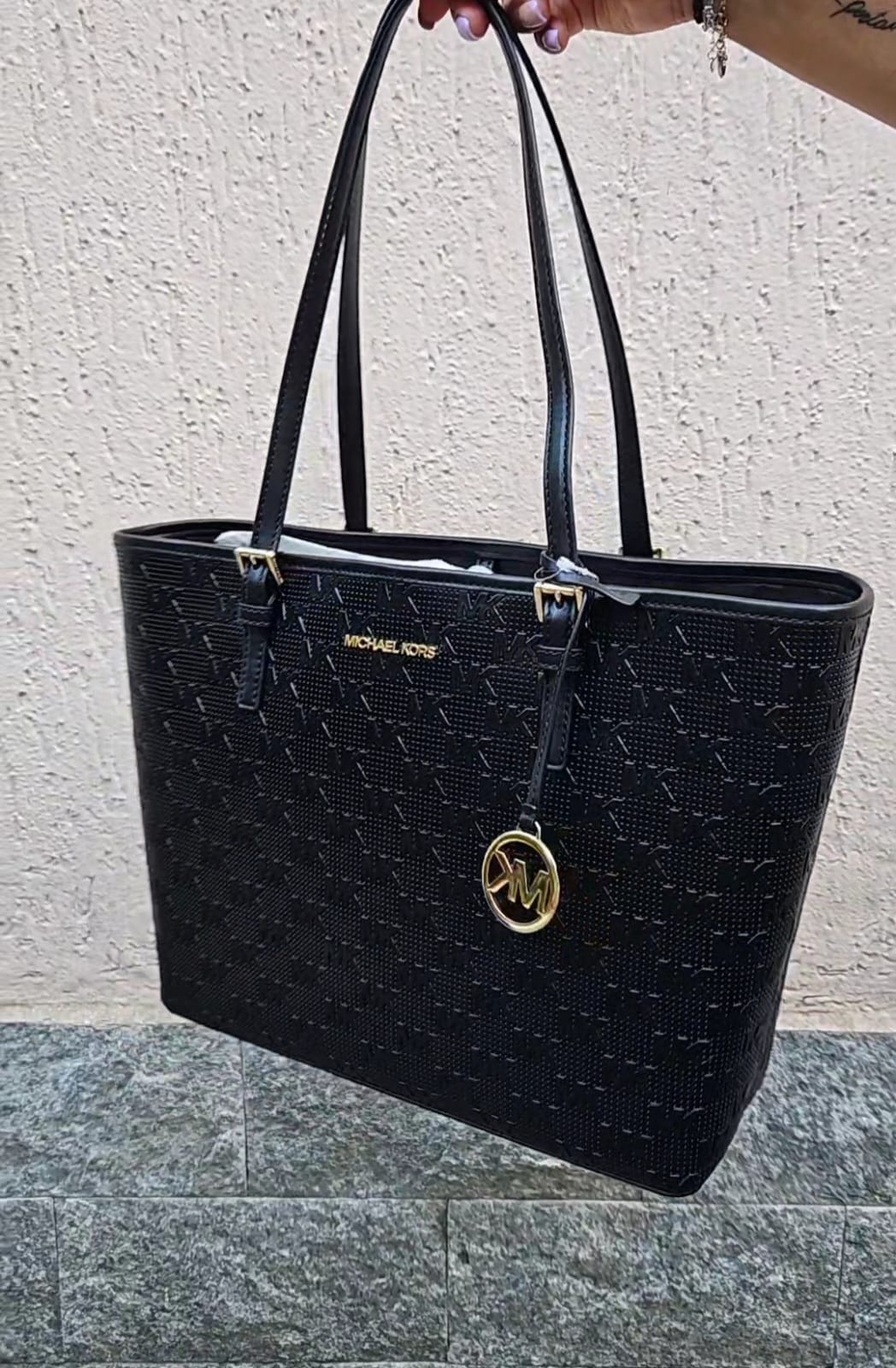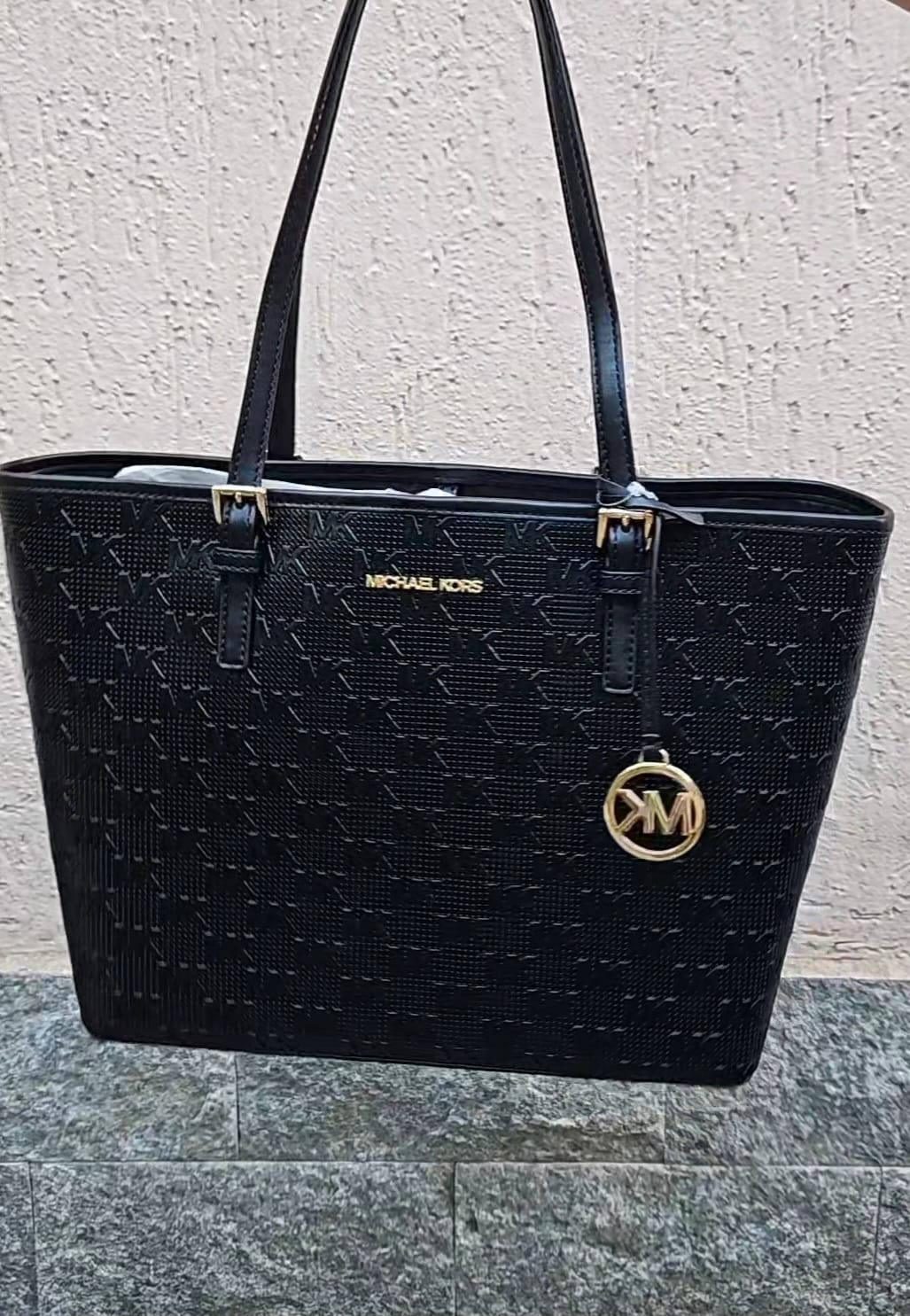 Borsa a spalla Jet set carryal, Michael Kors, colore nero con stamoa logo in rilievo.