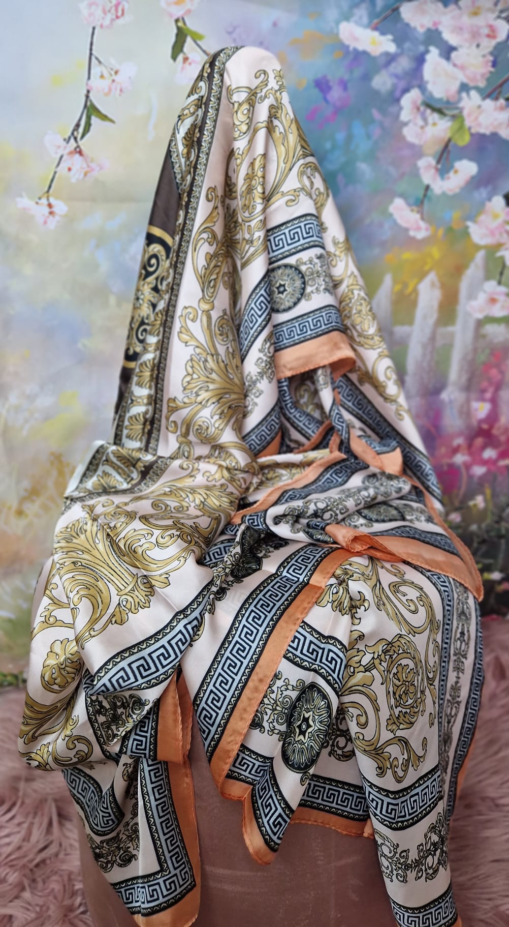 Stampa elegante e stile audace. La maxi stola è un accessorio da passeggiate sotto tramonti estivi, da brezza marina, per avvolgere delicatamente le spalle di una donna che ama la bellezza dei dettagli.