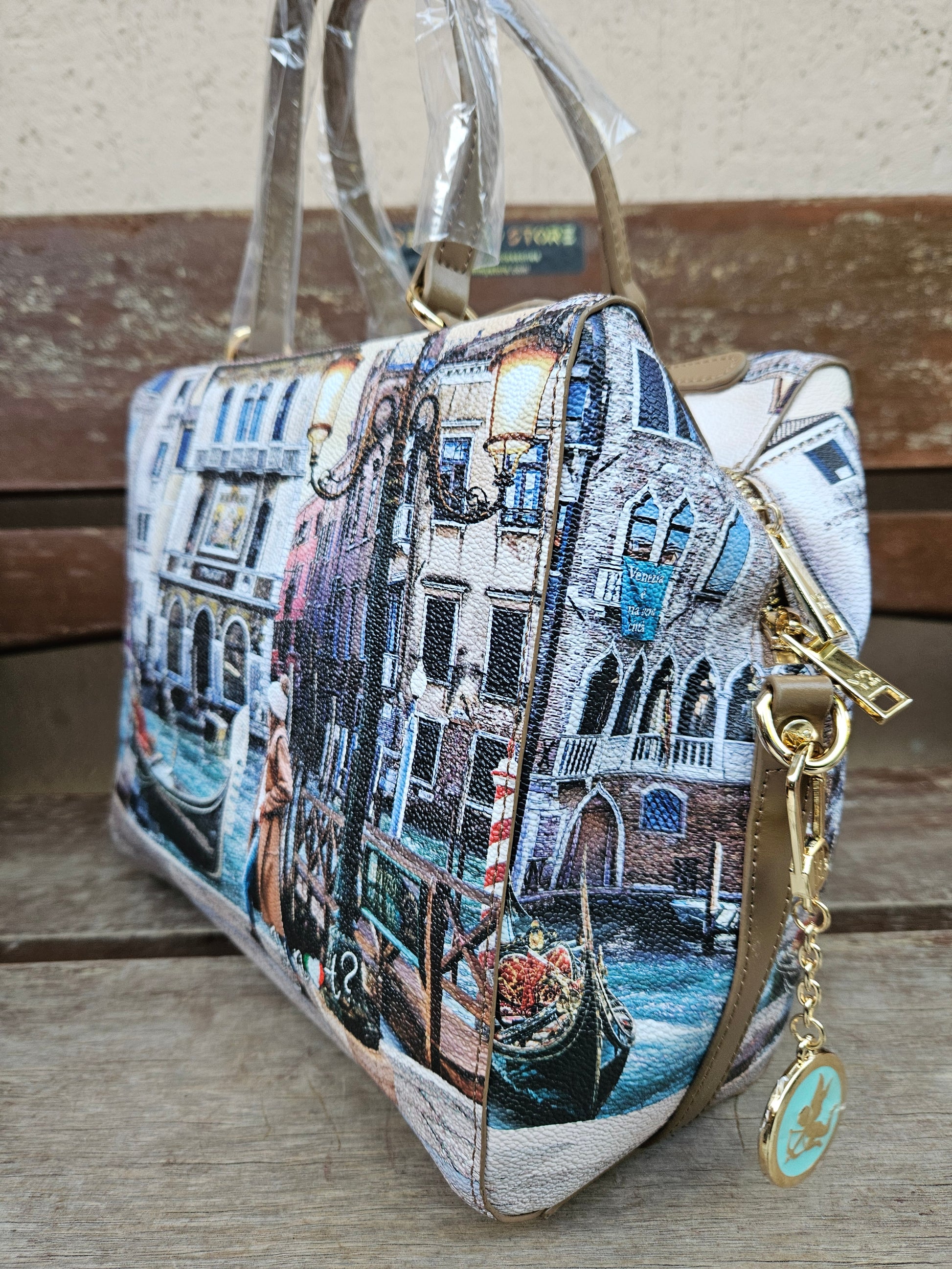 La Boston Bag di YNot? Perfetta per ogni occasione. Portala a mano per un tocco glam serale, o trasformala in una crossbody grazie alla tracolla removibile e regolabile. Con le sue stampe uniche, ti permette di indossare un nuovo stile ogni giorno.