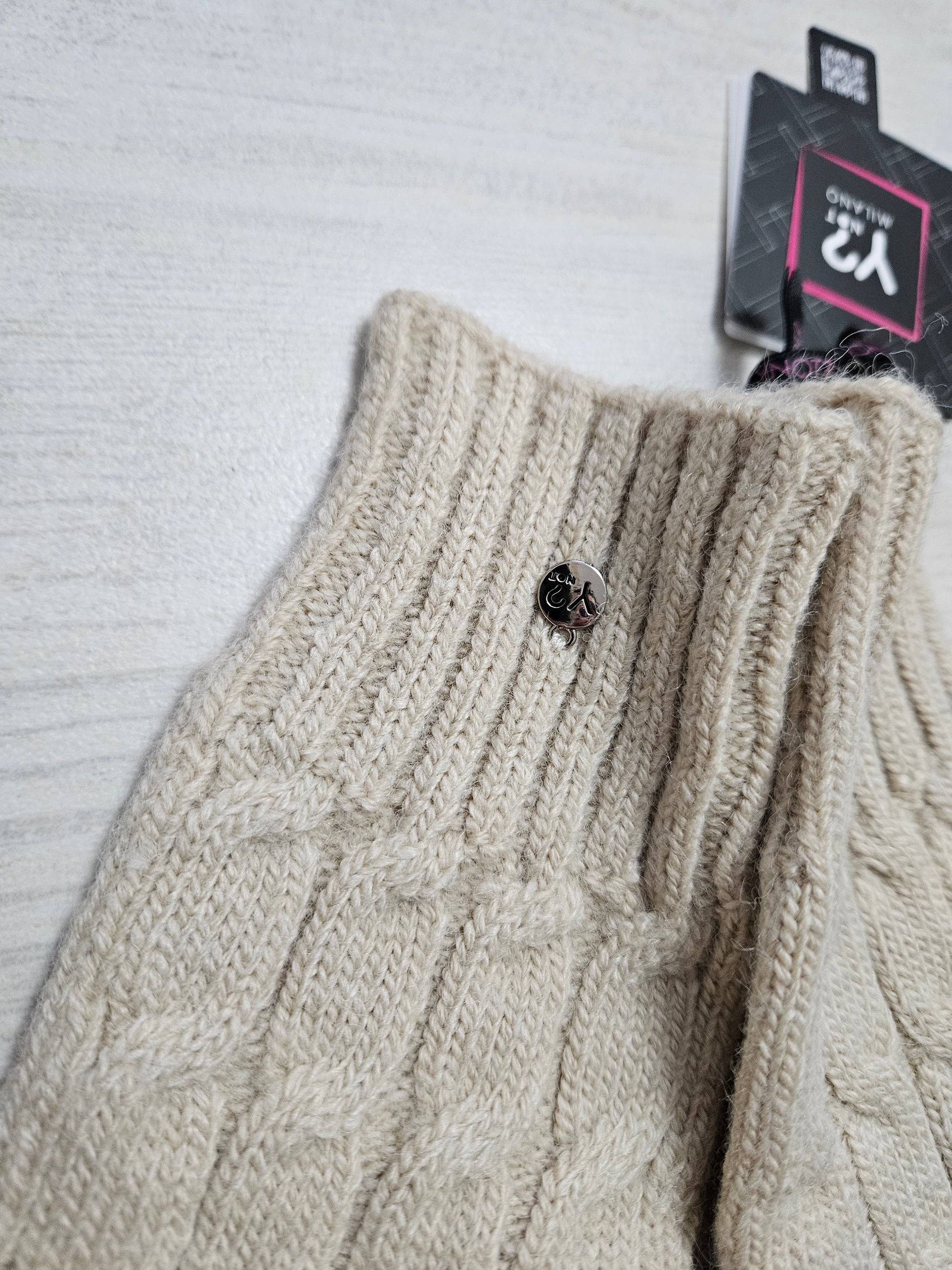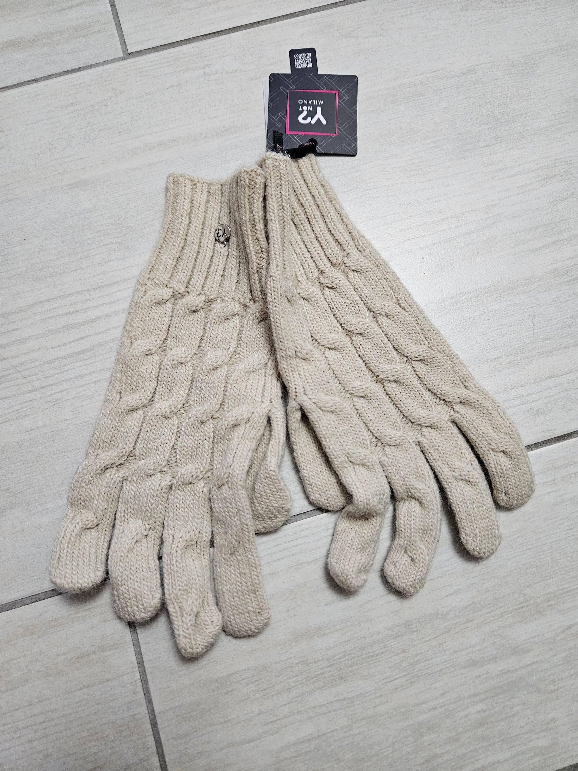 Guanti in maglia morbidi e caldi, realizzati in 33% poliestere, 28% lana, 20% alpaca, 13% nylon, 6% elastan. Taglia unica, con polsino a costine per una vestibilità comoda e aderente. Perfetti per completare i look invernali.