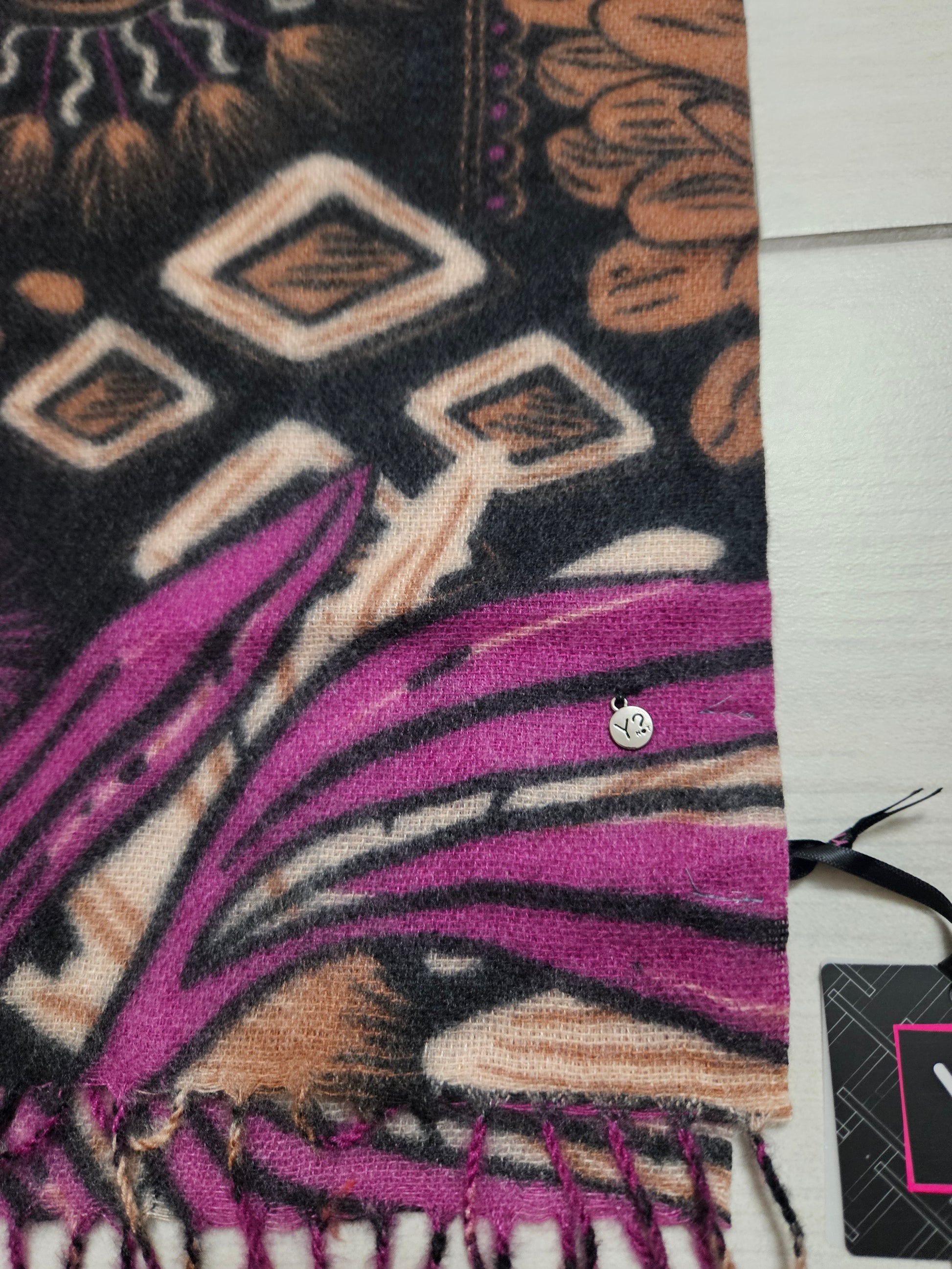 Sciarpa Y Not con originale fantasia etnica e dettagli decorativi a contrasto. Realizzata in tessuto morbido e caldo, presenta frange sottili sul bordo che aggiungono un tocco boho-chic al look. Un accessorio versatile e confortevole, ideale per completare outfit autunnali e invernali con stile e personalità. Dimensioni ampie per un avvolgente comfort quotidiano.