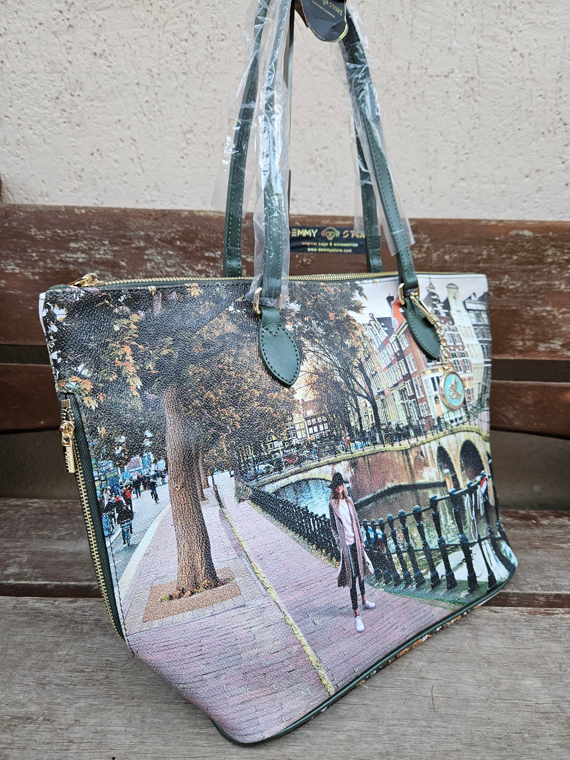 Il modello Shopping è funzionale e capiente, grazie ai comodi scomparti e tasche che possono contenere documenti e tutti i tuoi effetti personali. Realizzata grazie a una combinazione di materiali molto resistenti, è l'accessorio perfetto per accompagnarti nei tuoi impegni quotidiani. Vasto numero di stampe tra cui scegliere, opta per la città che ti rappresenta di più.