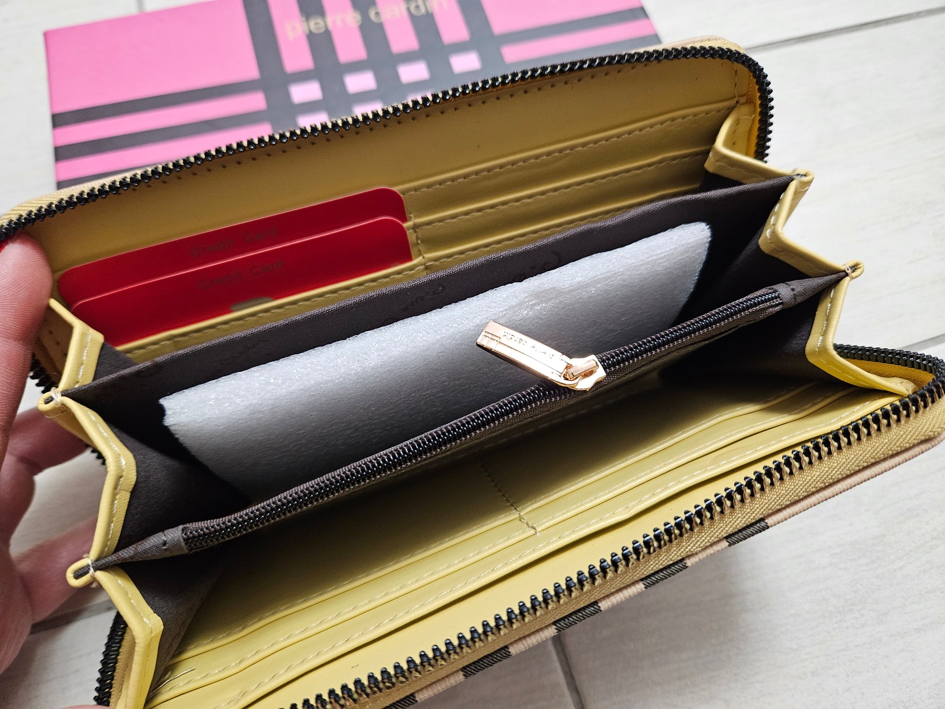 Portafoglio donna Pierre Cardin con chiusura a zip e scompartimenti interni per carte, monete e banconote in ecopelle