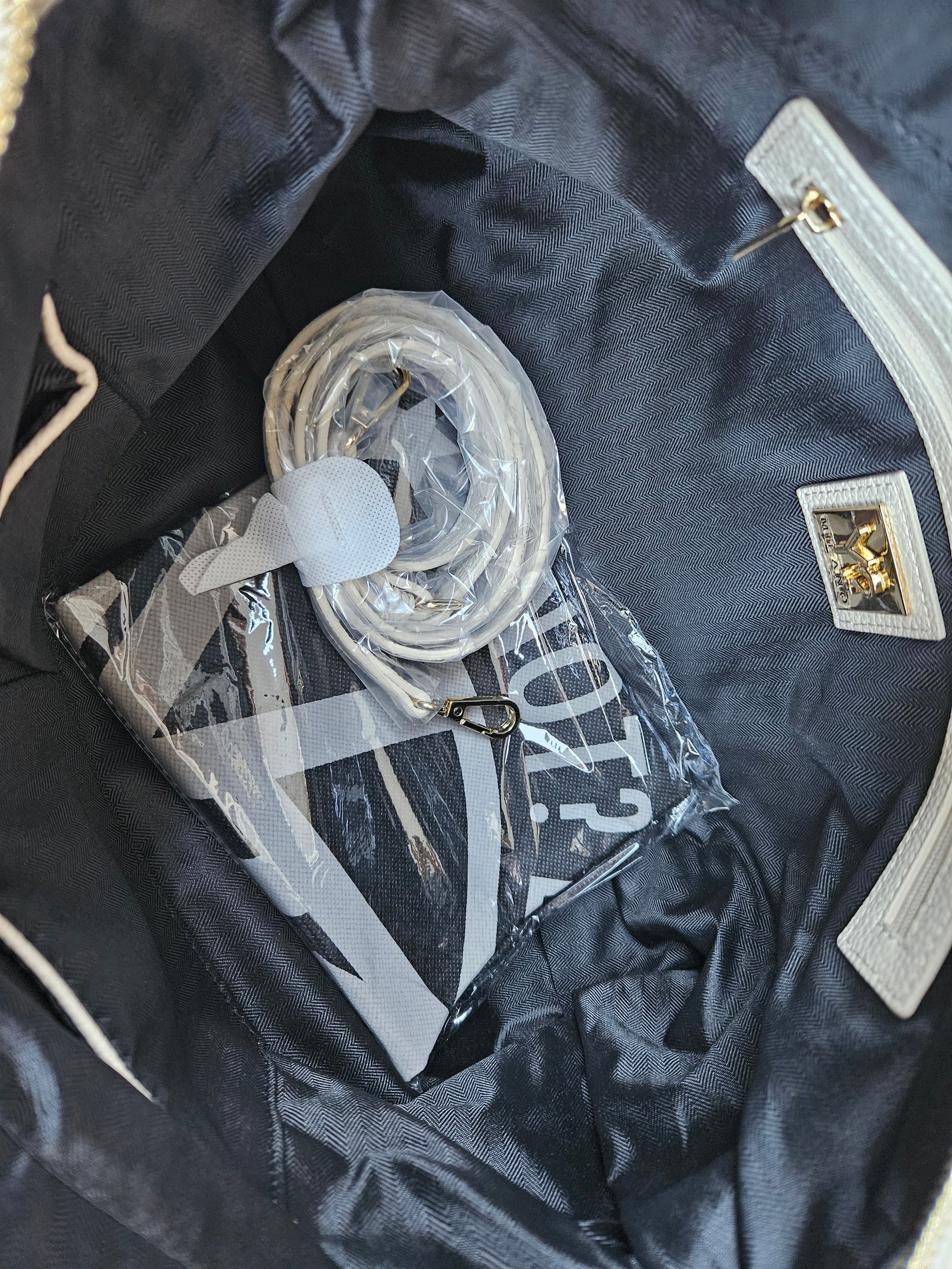 Scopri la nostra elegante borsa da shopping con chiusura principale a zip e manico regolabile. L’interno organizzato e foderato ti permette di tenere tutto in ordine. Perfetta per ogni occasione, unisce stile e funzionalità.