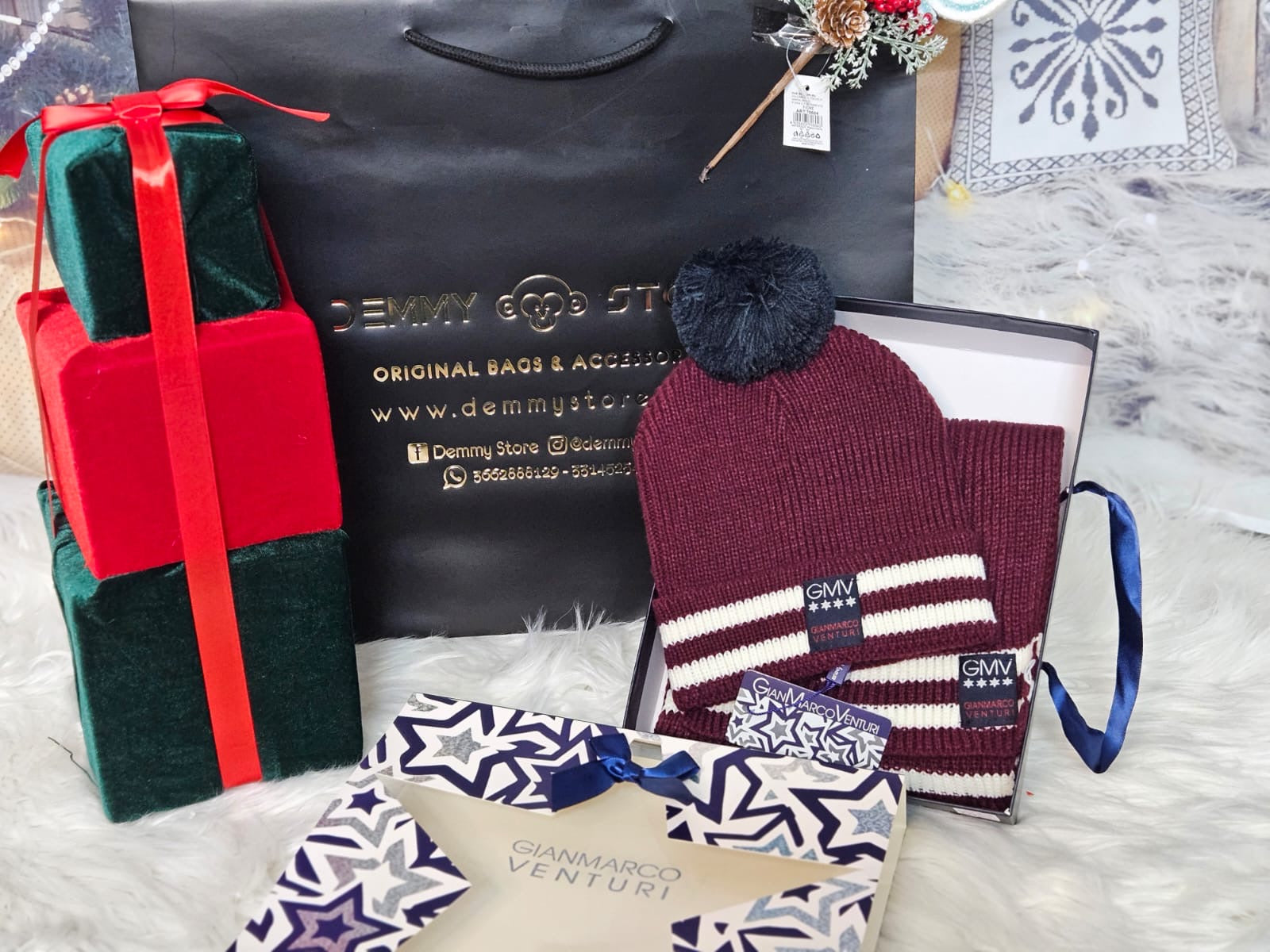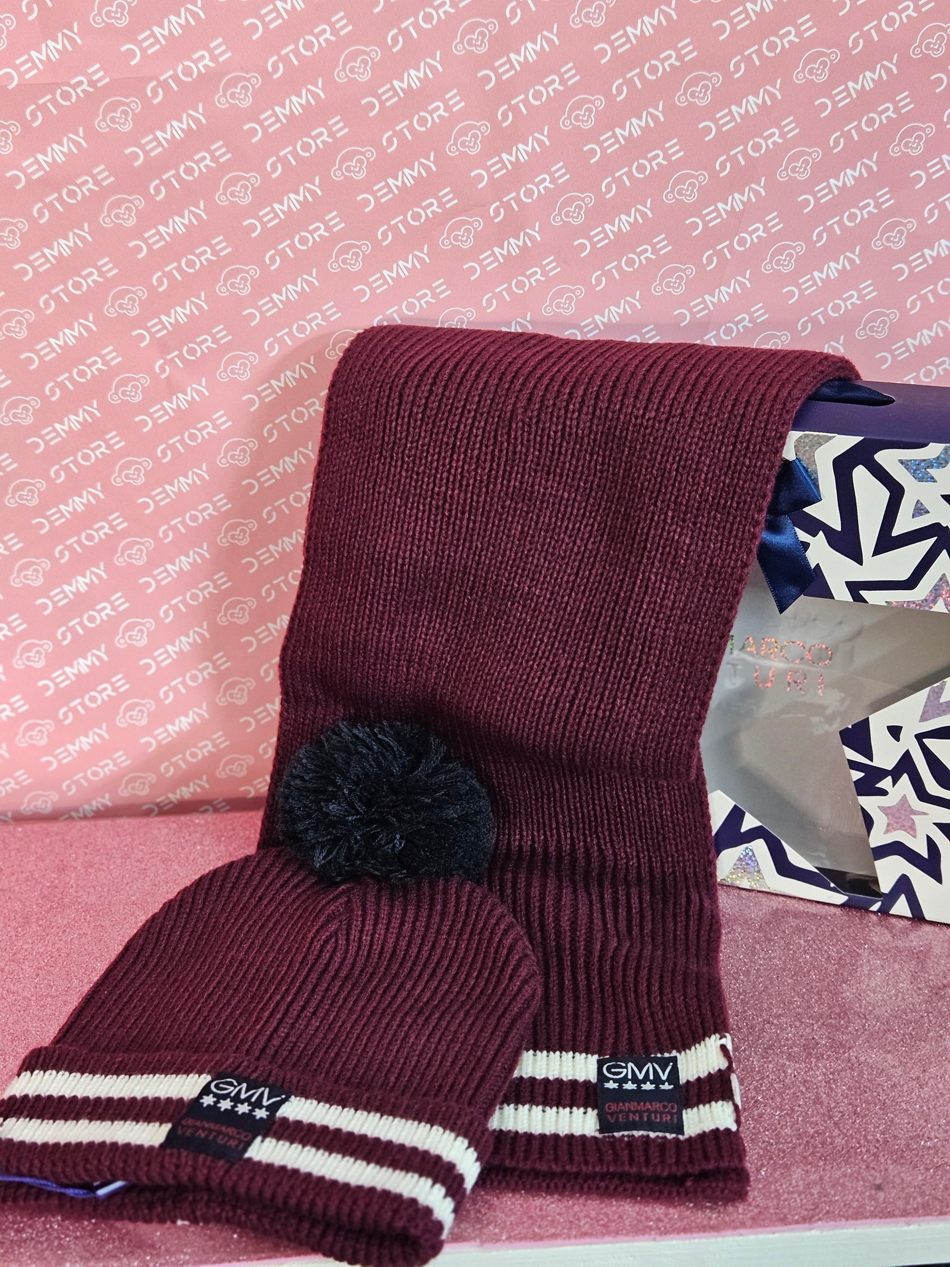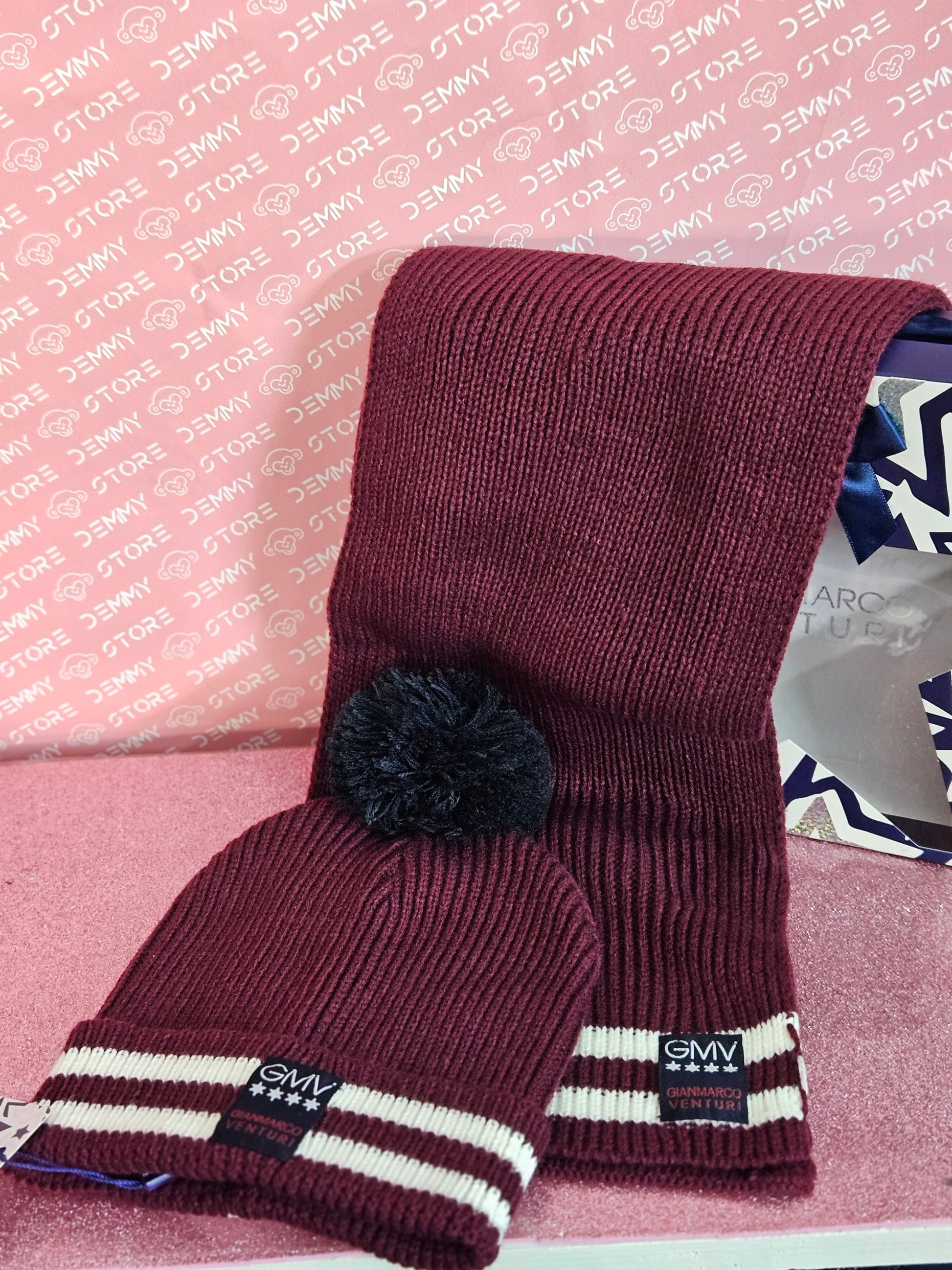 Comprende sciarpa + cappello pom pon , in scatola regalo.