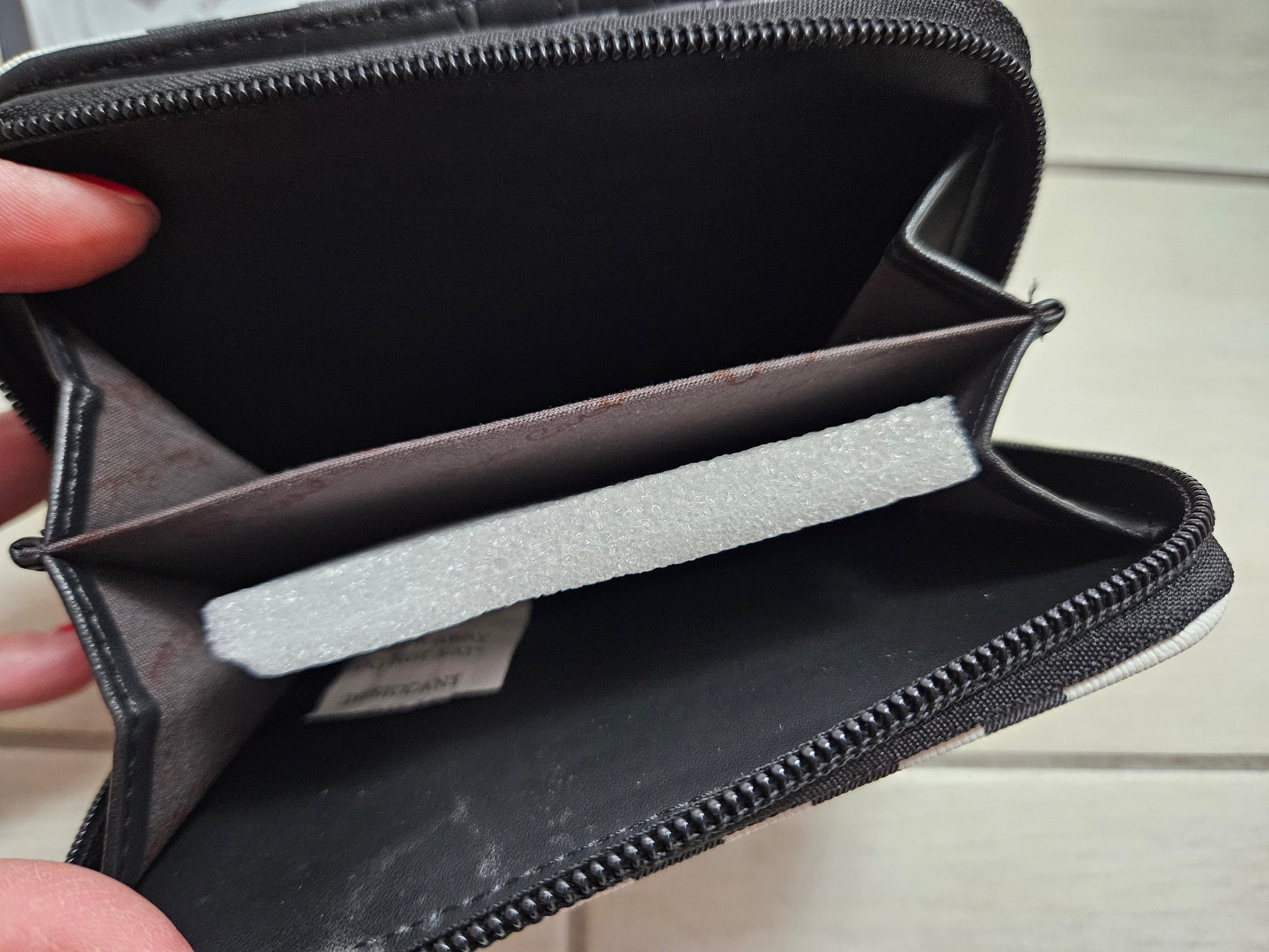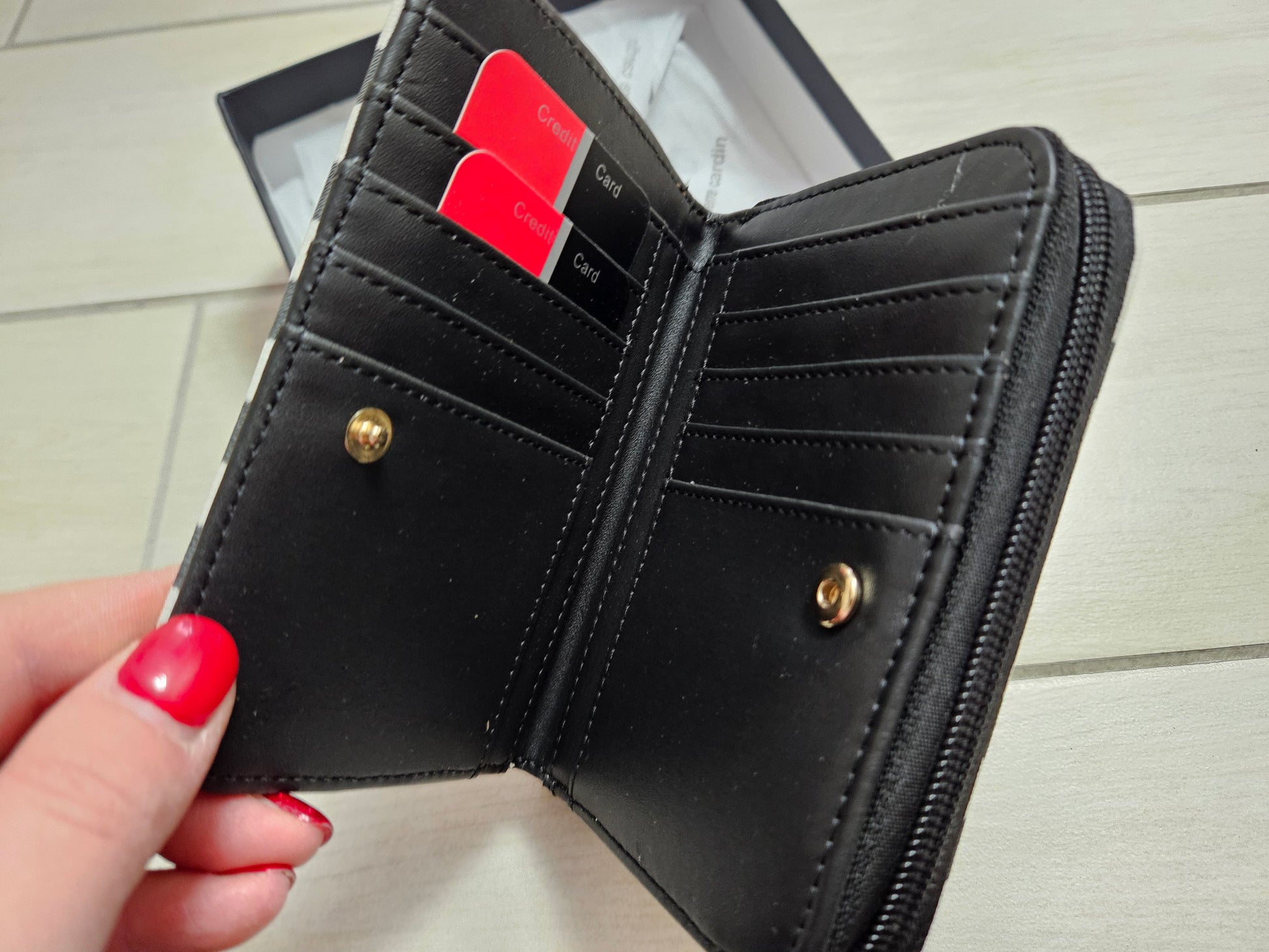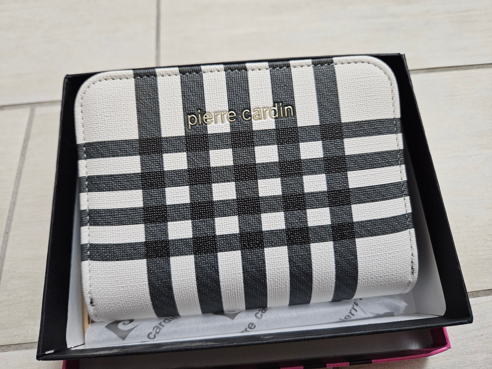 Borsellino donna Pierre Cardin, chiusura a zip e patta con scompartimenti interni per carte, monete e banconote in ecopelle.