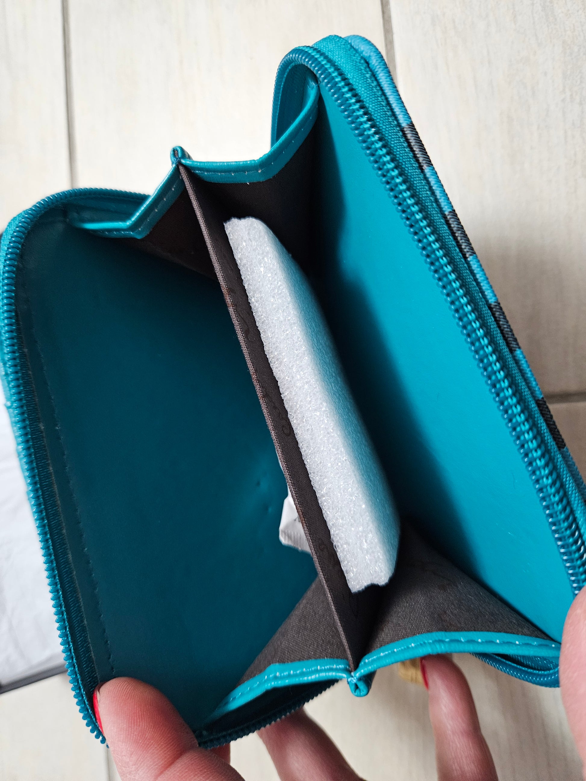 Borsellino donna Pierre Cardin, chiusura a zip e patta con scompartimenti interni per carte, monete e banconote in ecopelle.