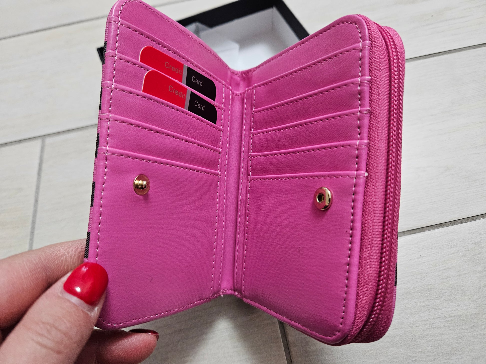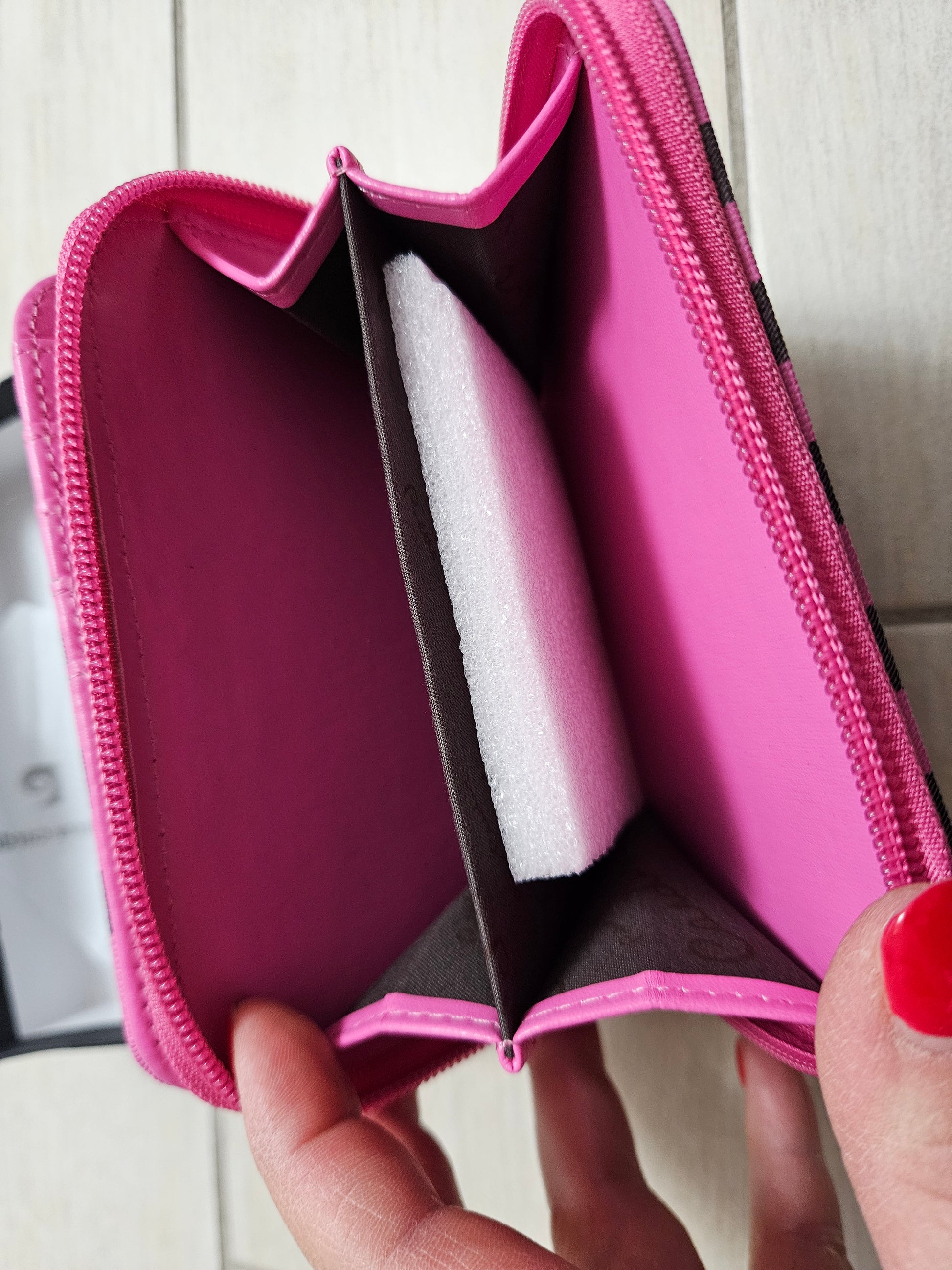 Borsellino donna Pierre Cardin, chiusura a zip e patta con scompartimenti interni per carte, monete e banconote in ecopelle.
