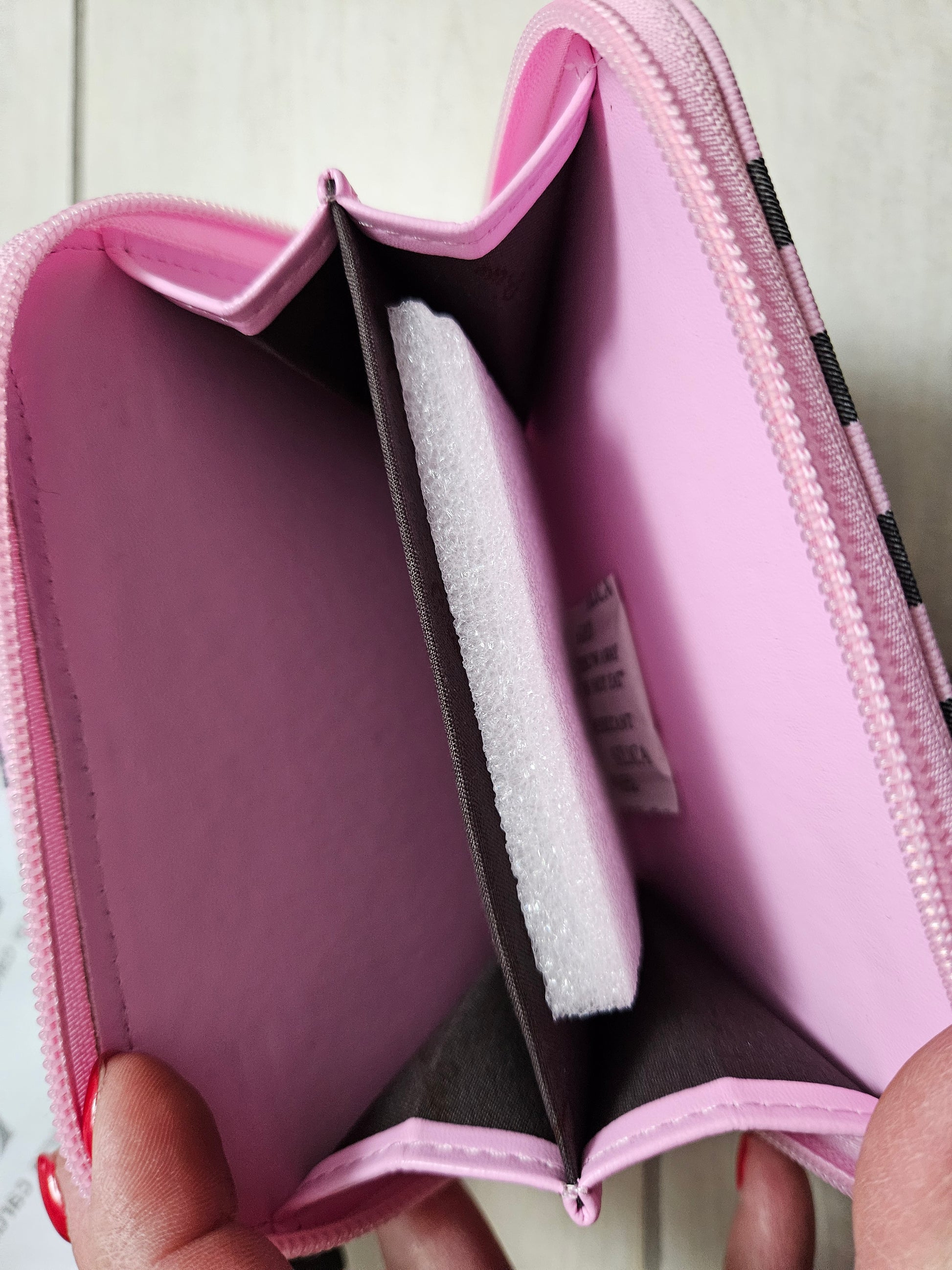 Borsellino donna Pierre Cardin, chiusura a zip e patta con scompartimenti interni per carte, monete e banconote in ecopelle.