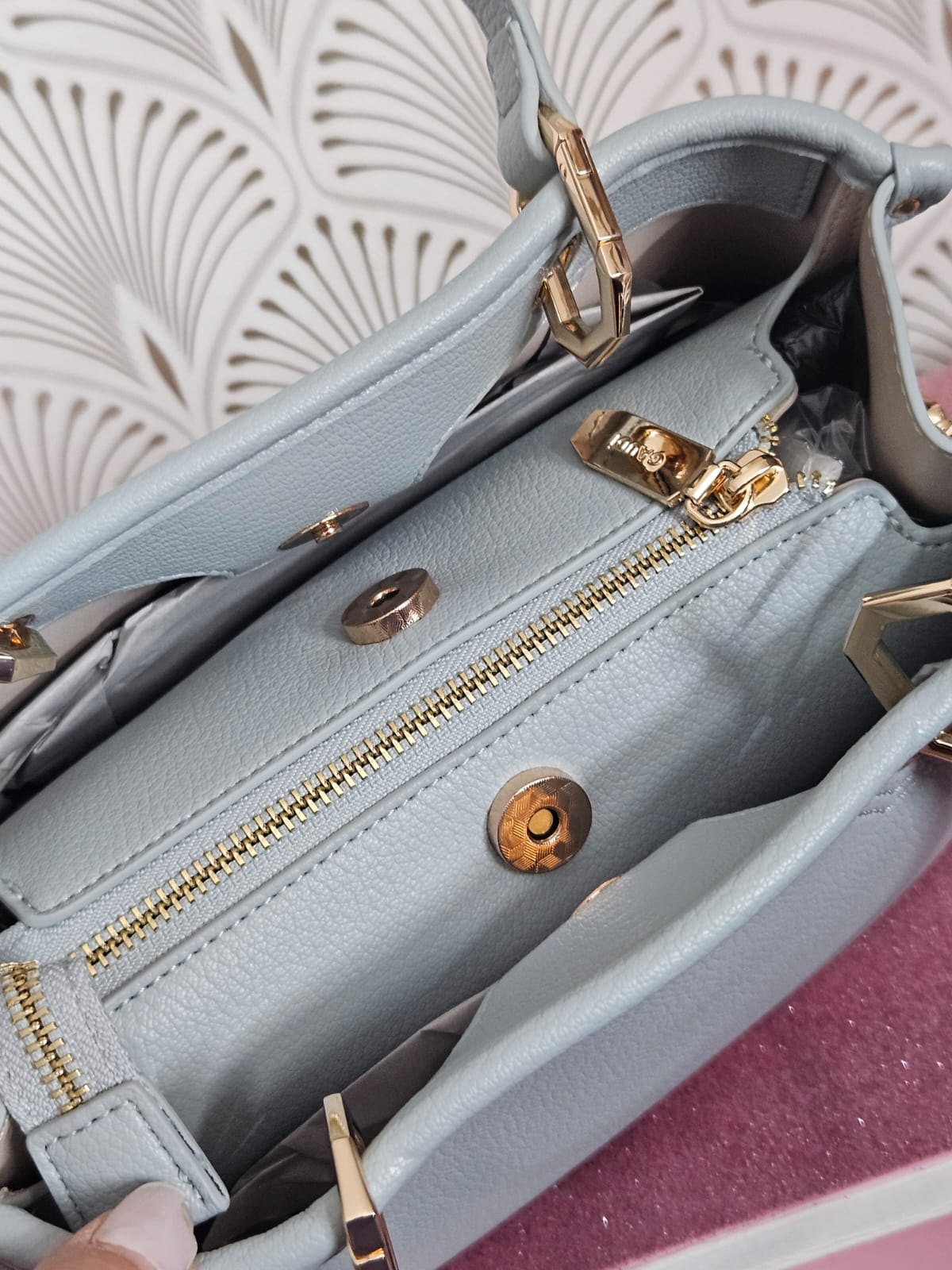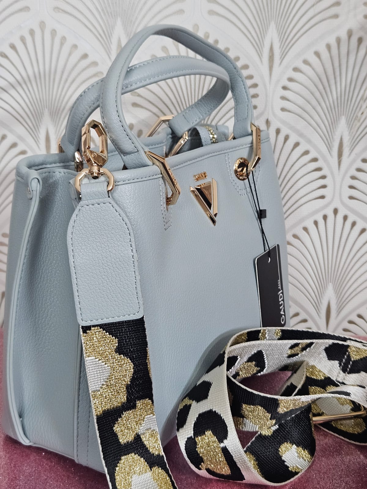 Scegli la borsa top handle in similpelle con logo in metallo e tracolla animalier rimovibile. Per un tocco sofisticato e versatile ai tuoi look. Tracolla in tessuto removibile e regolabile con slider, lunghezza 120 cm.