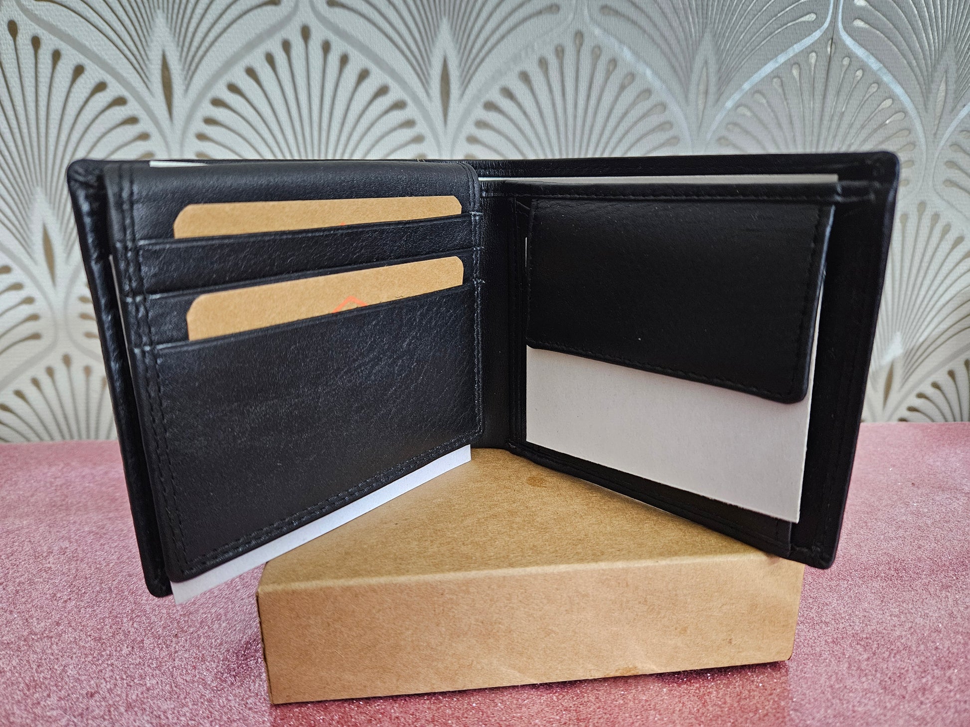 Interno con scomparti porta tessere, tasca montete, tasca banconote.