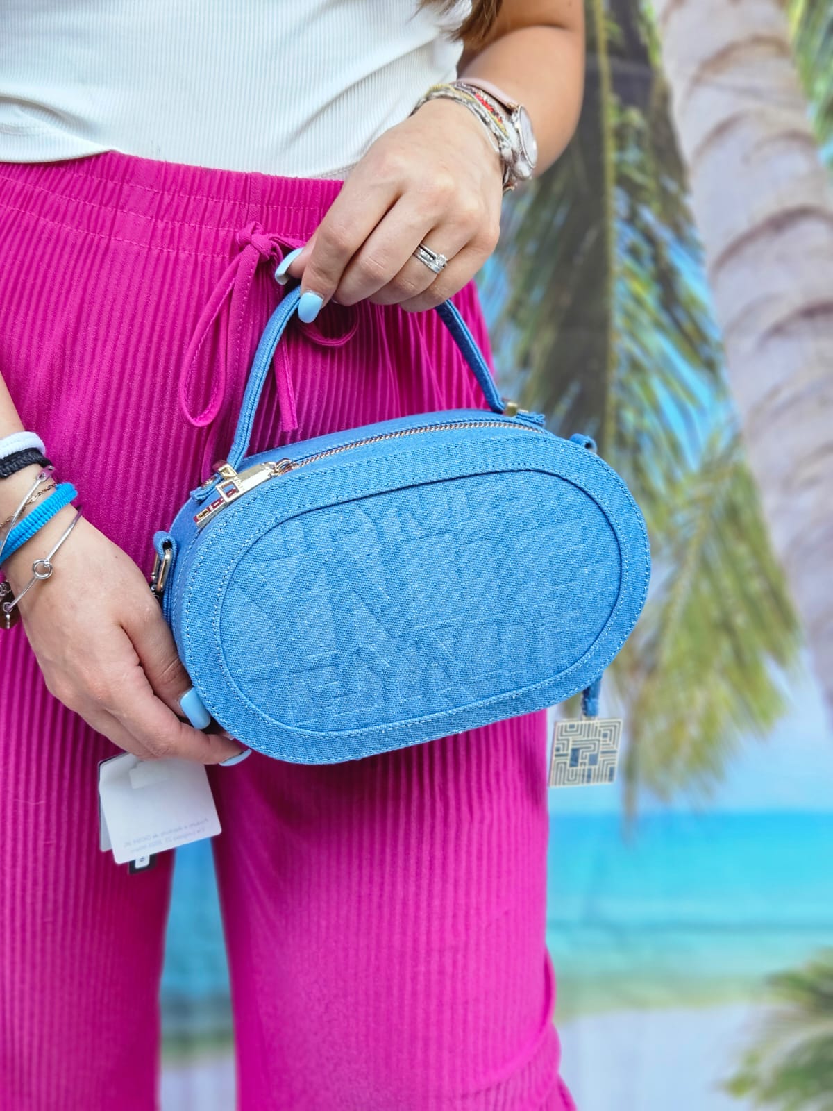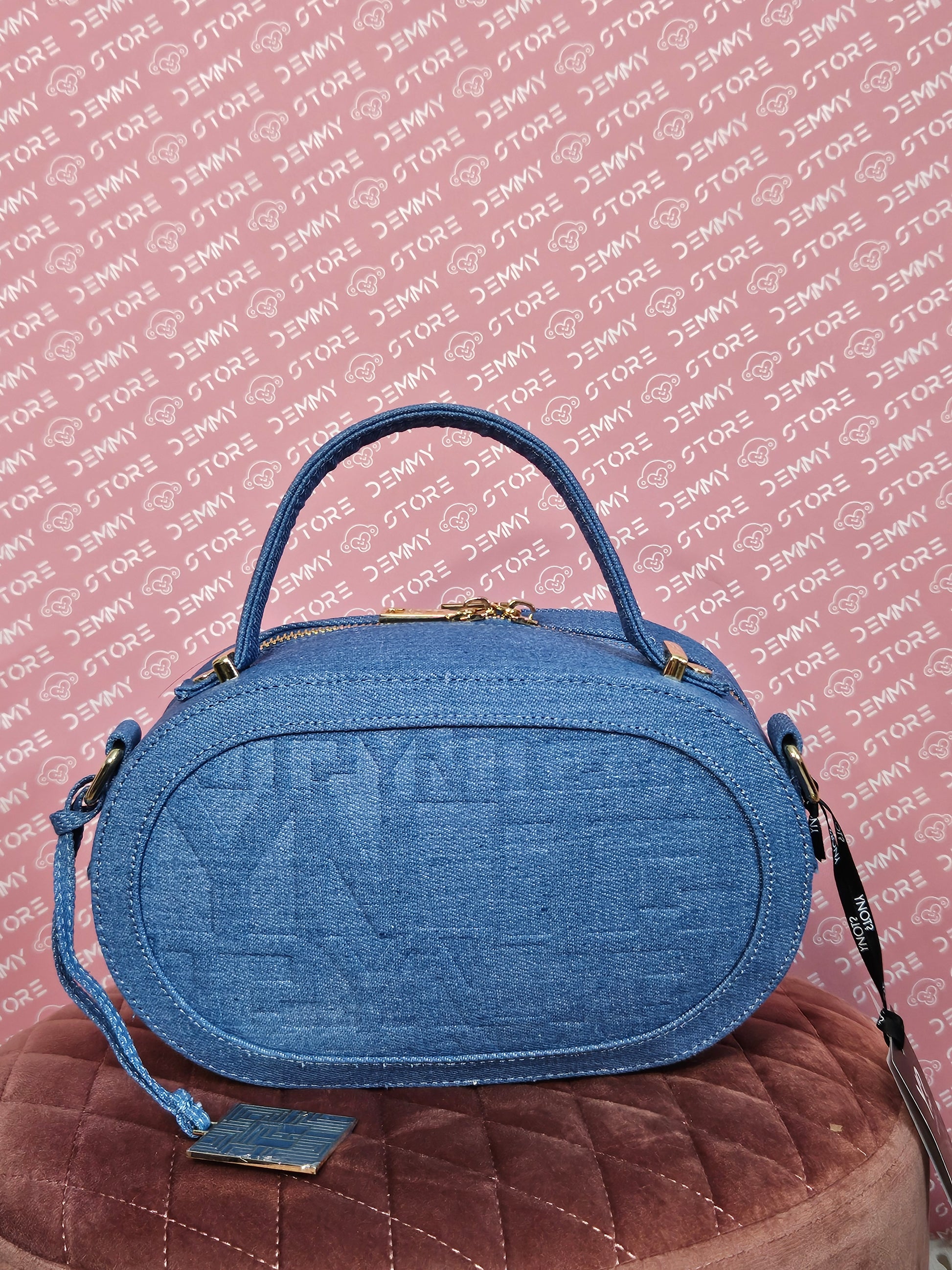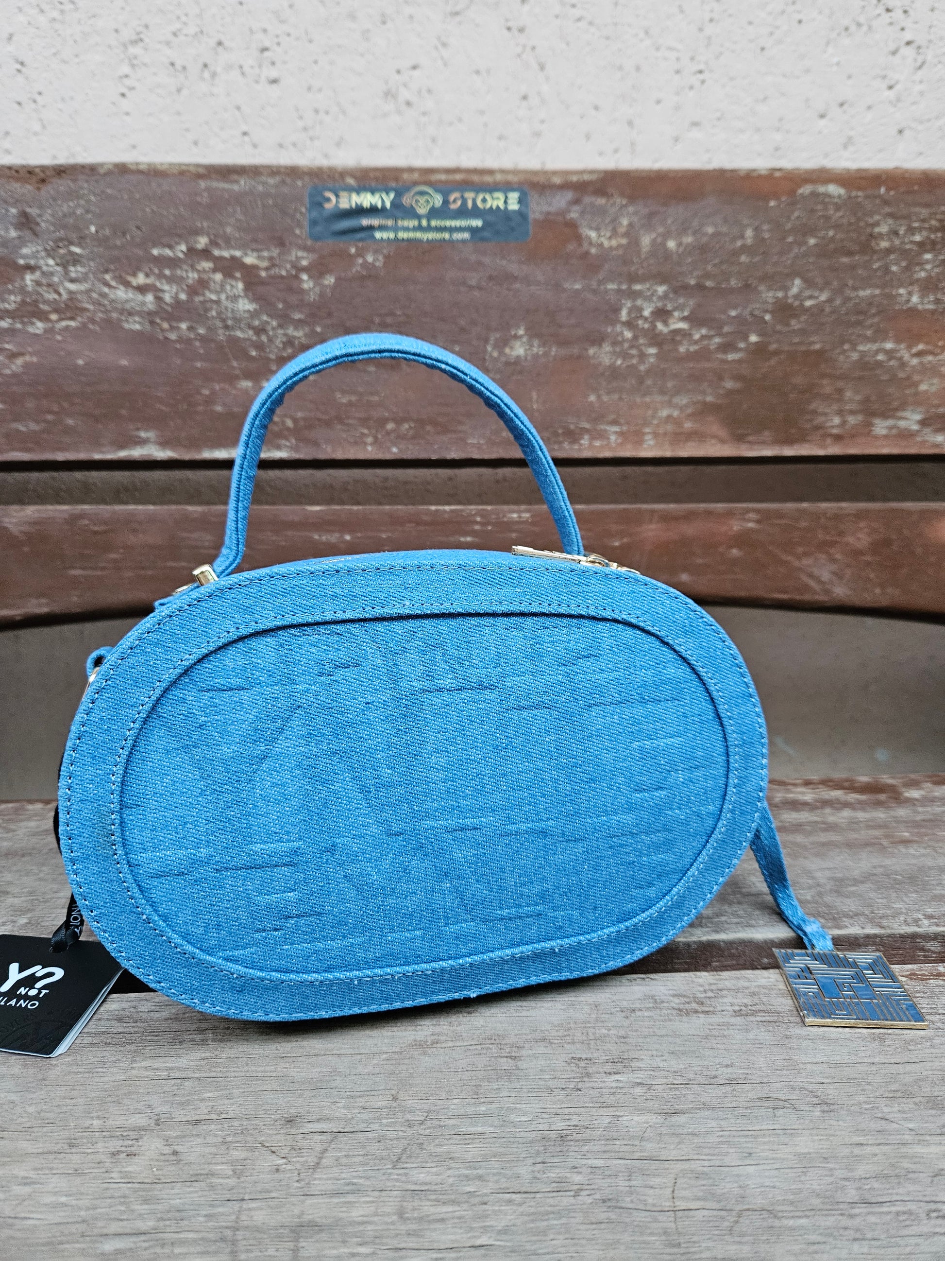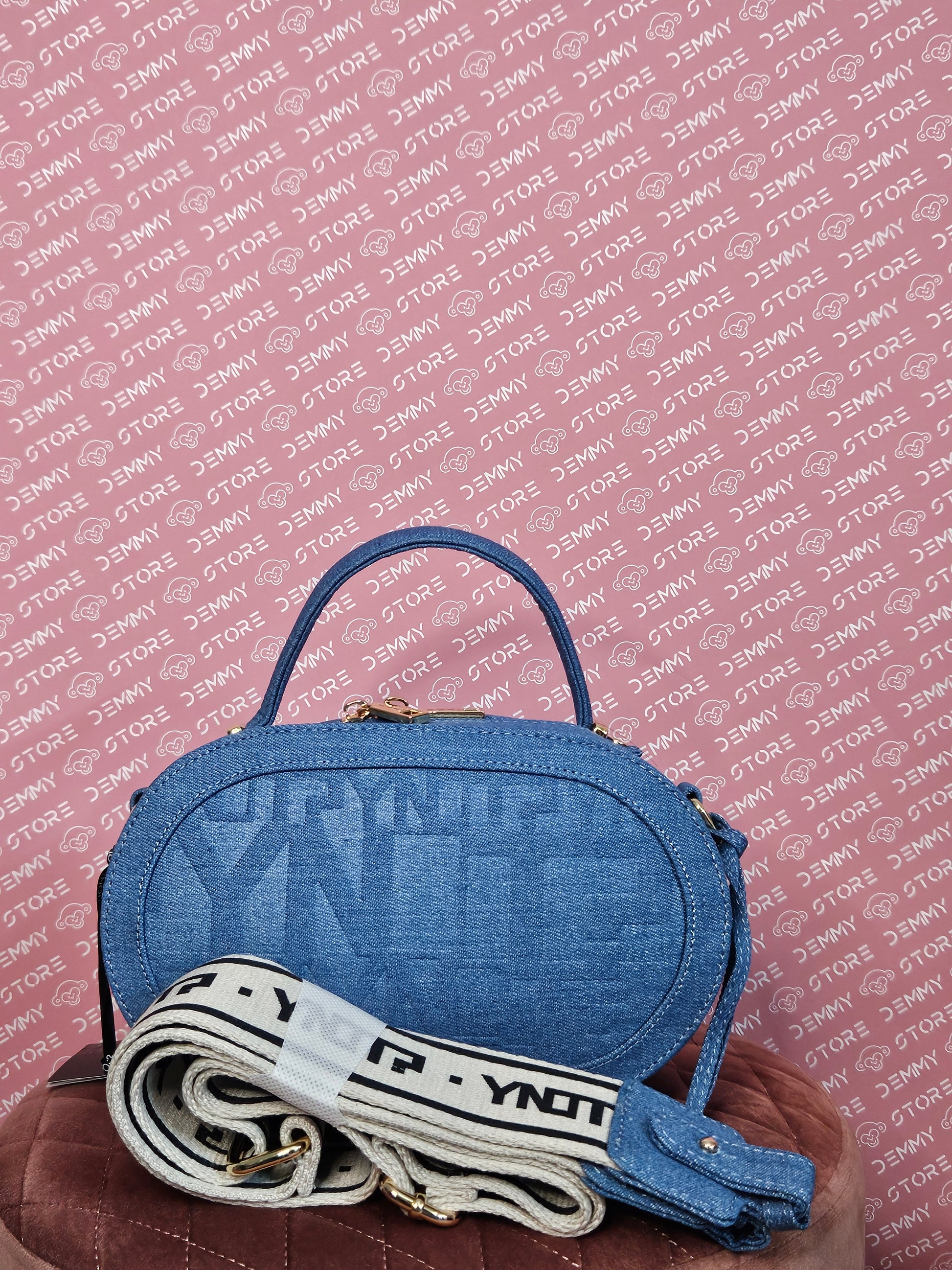 Tracollina Donna Y Not KAT006S4 Reporter in ecopelle con logo a rilievo di forma ovale con zip, manico corto e tracolla in cordura logata.