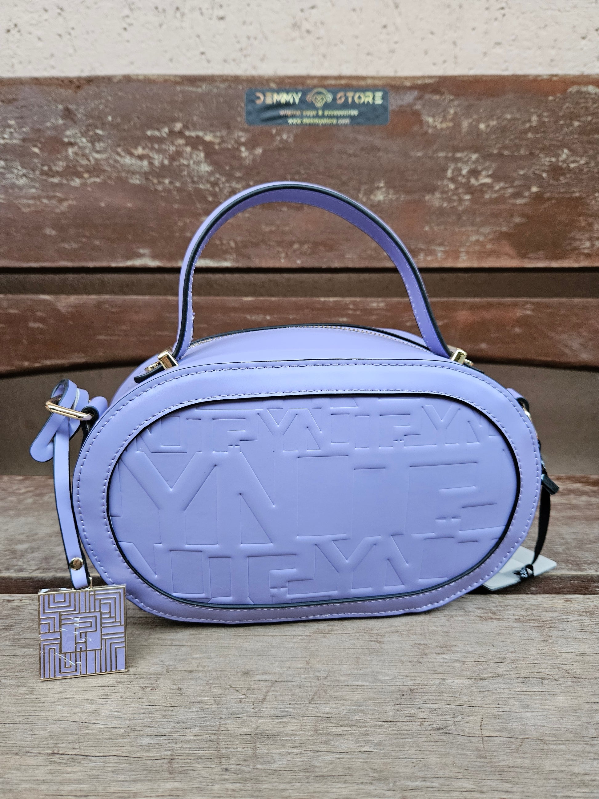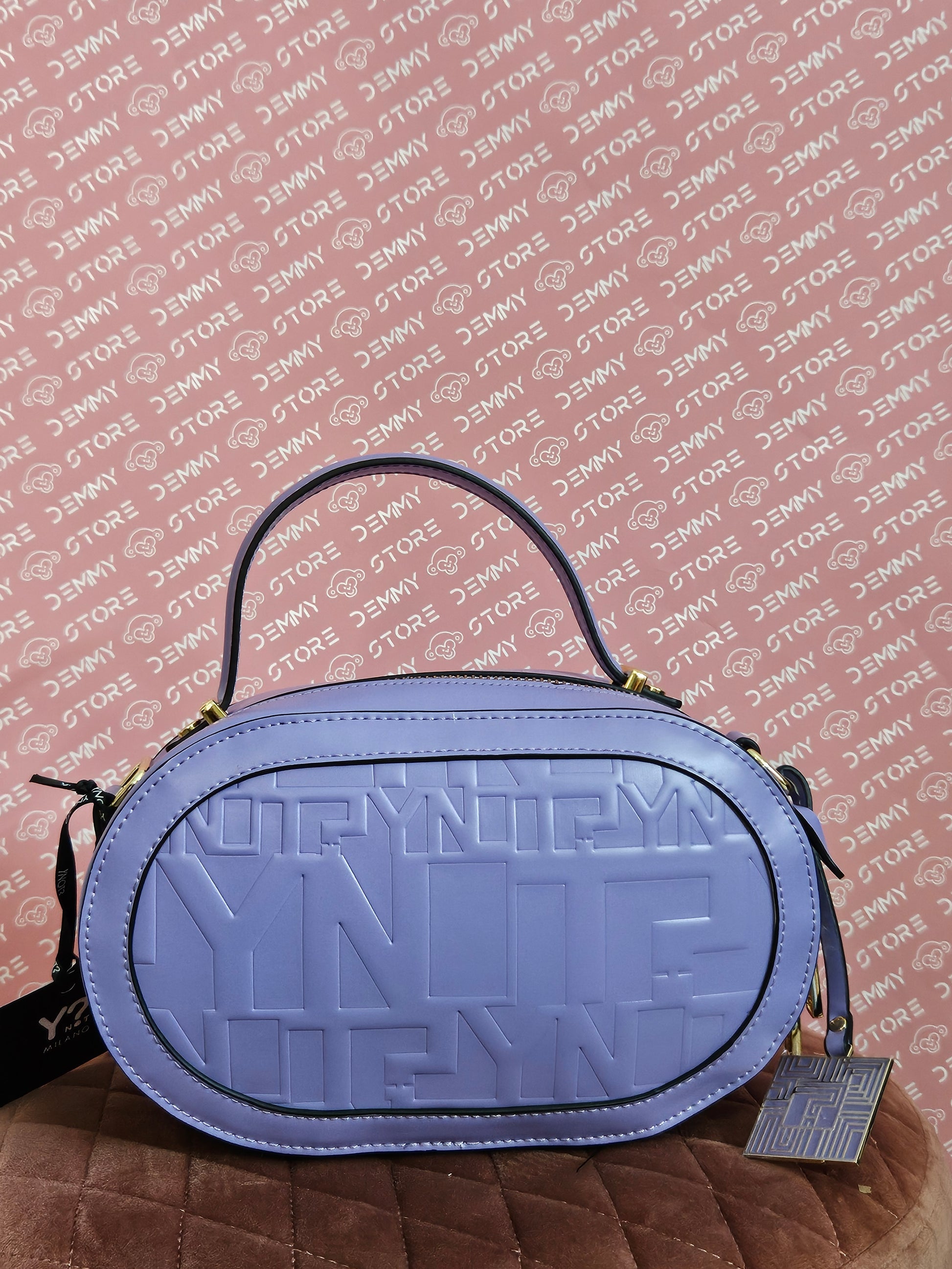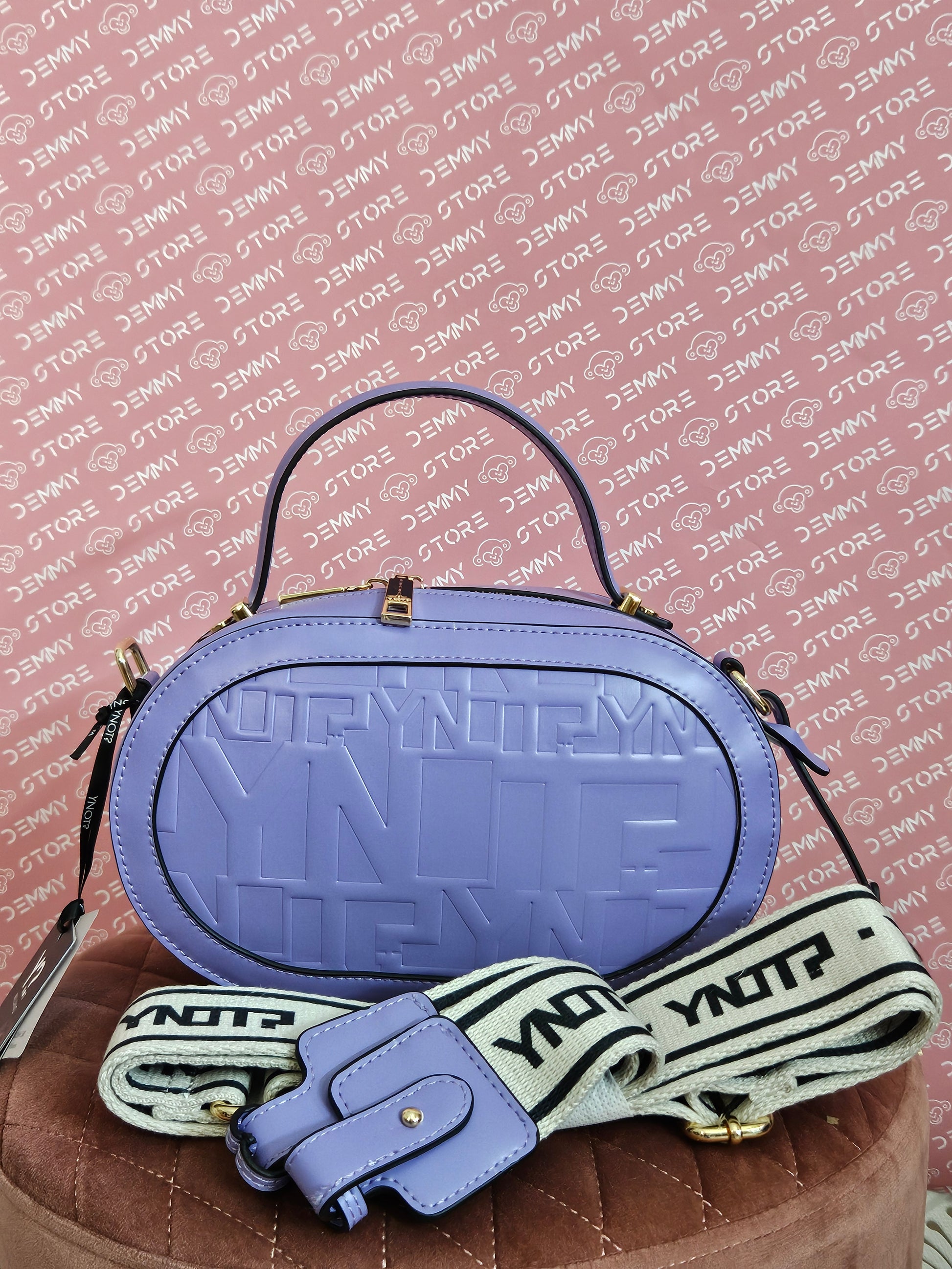 Tracollina Donna Y Not KAT006S4 Reporter in ecopelle con logo a rilievo di forma ovale con zip, manico corto e tracolla in cordura logata.
