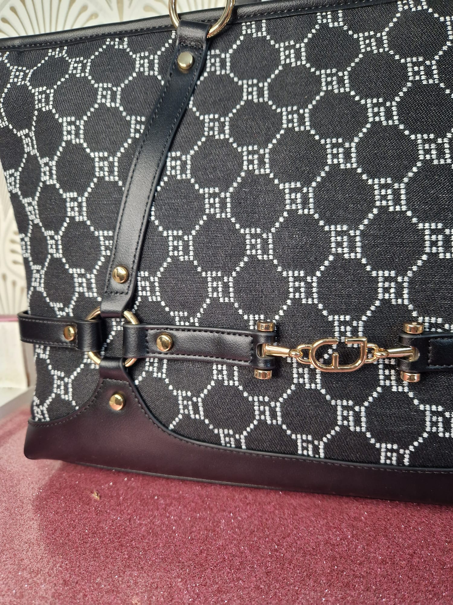 Scegli la shopping bag con lettering GJ jacquard all over e dettagli in similpelle. Per un look daily chic dal tocco sofisticato. Manici in similpelle, lunghezza 55 cm.