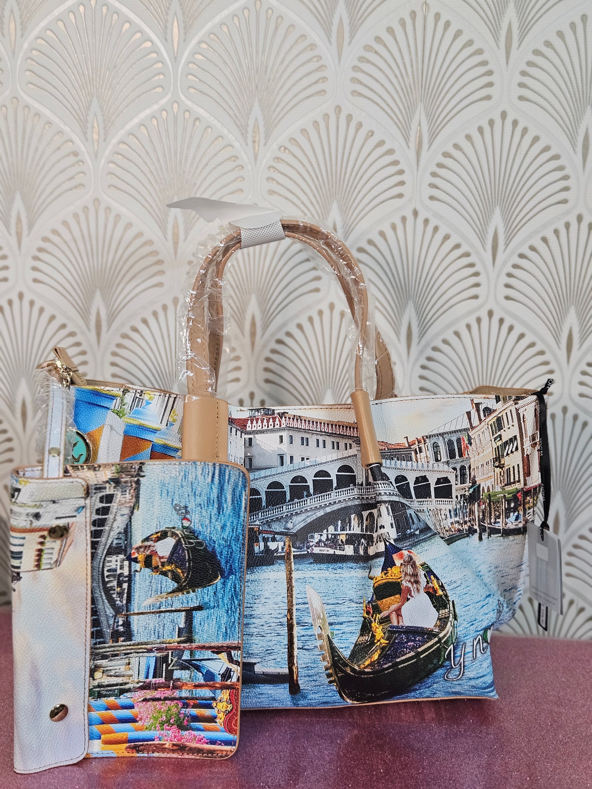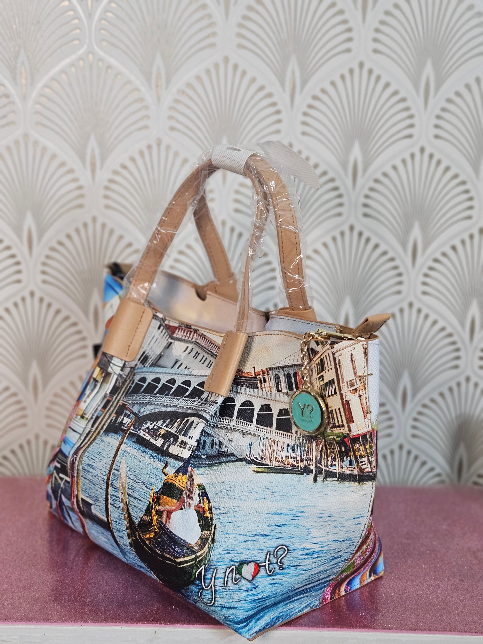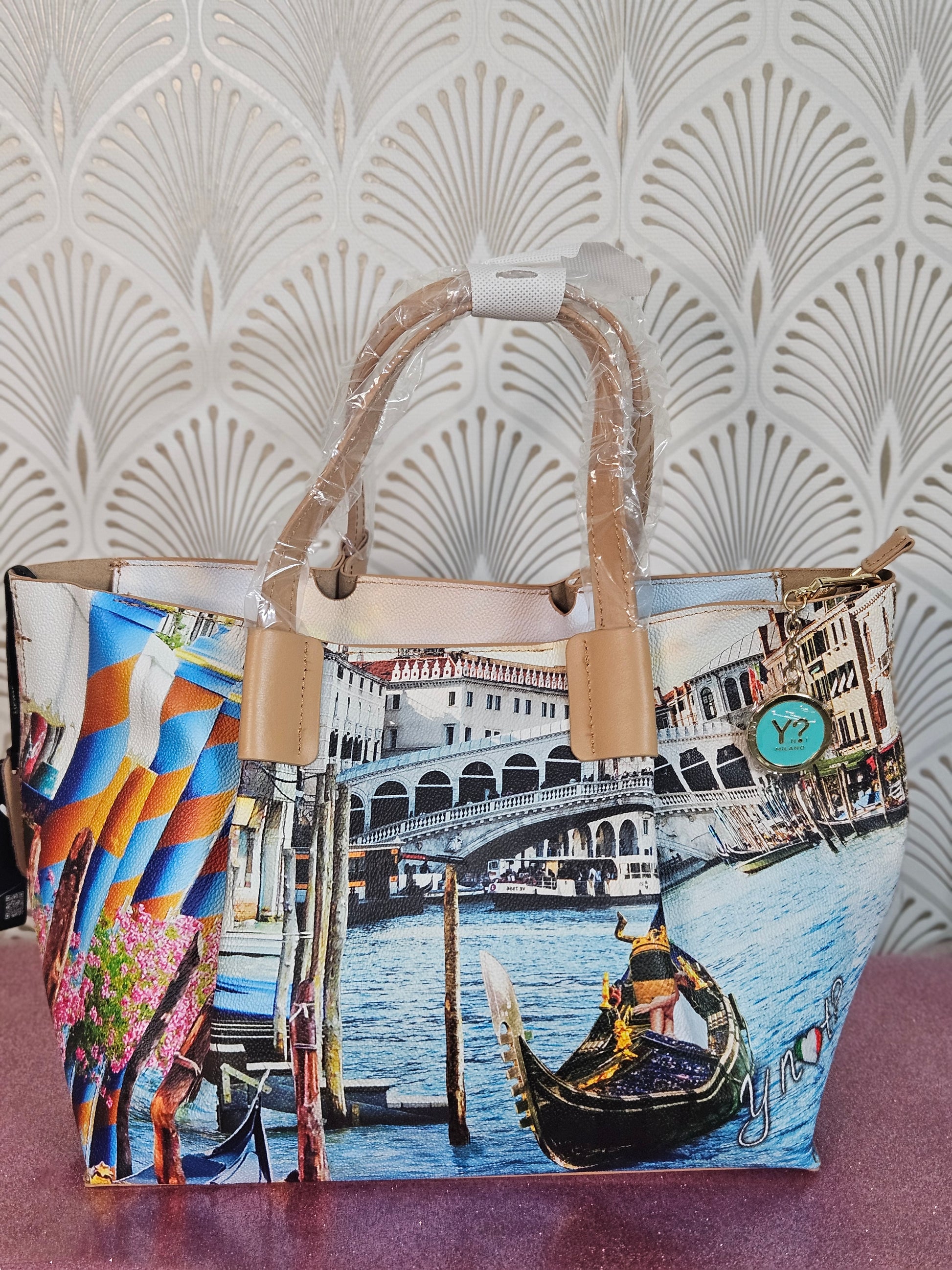 Borsa a mano, nuova collezione P/E 25. Chiusura con zip, tracolla in tessuto regolabile, pochette interna removibile da polso