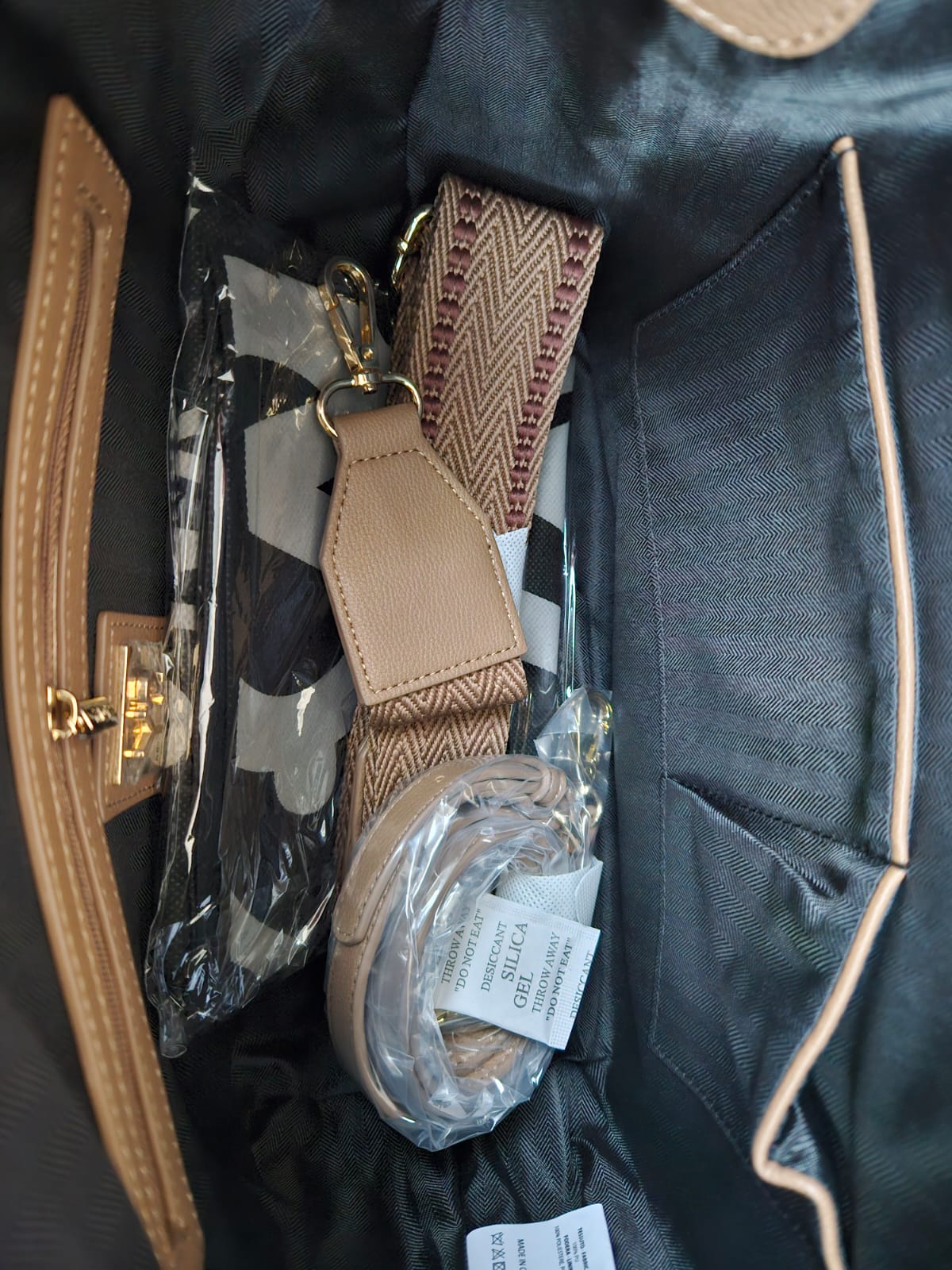 - Tracolla regolabile e rimovibile in tessuto con motivo chevron