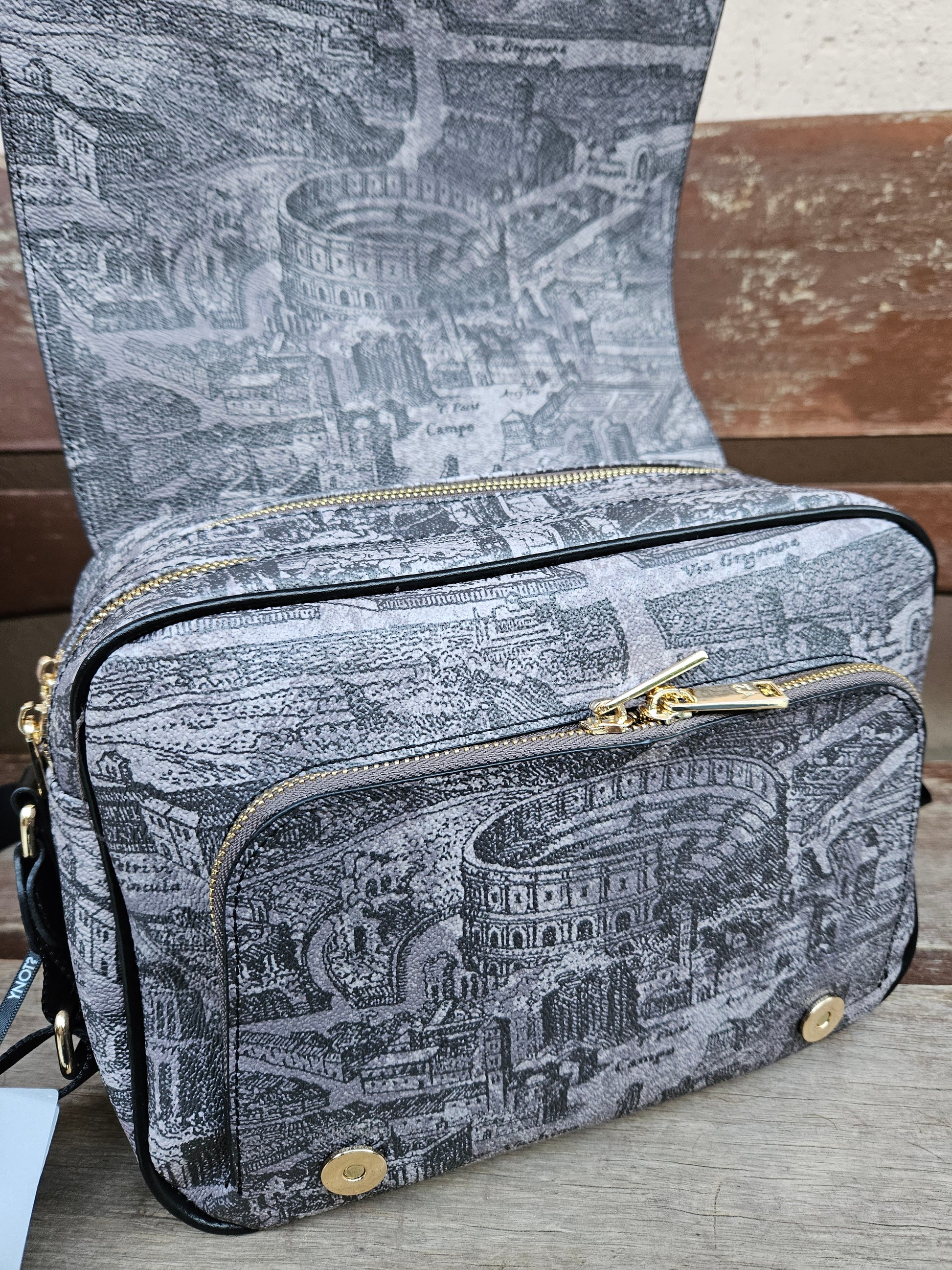 - 1tasca esterna chiusa con zip coperta dalla patta