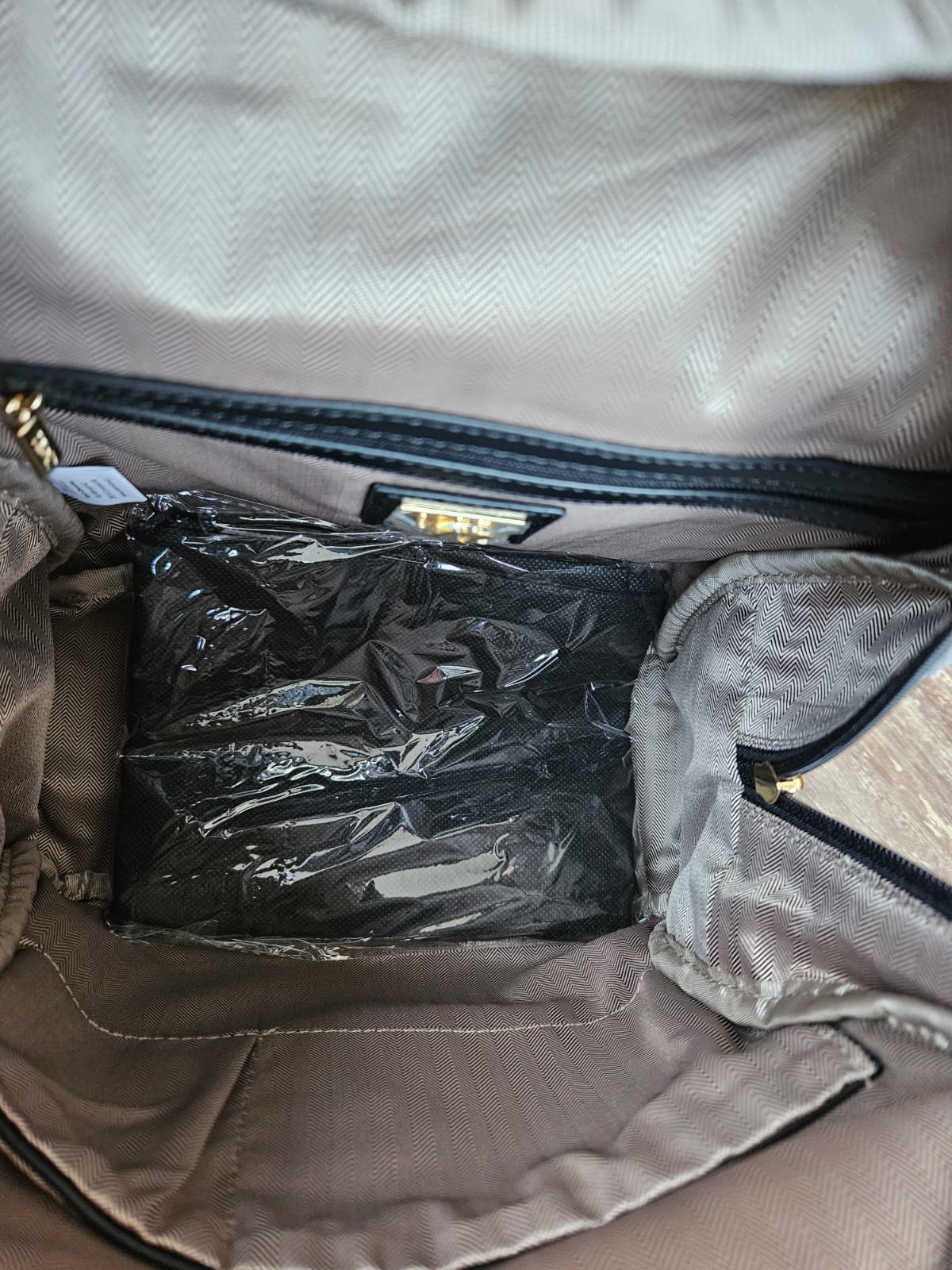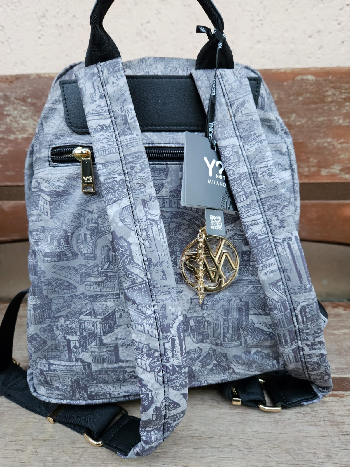 Zaino donna Comparto centrale organizzato con taschine interne Chiusura con zip Tasca esterna frontale chiusa con zip Manico superiore e spallacci regolabili Portabilità sia a mano sia a spalla.